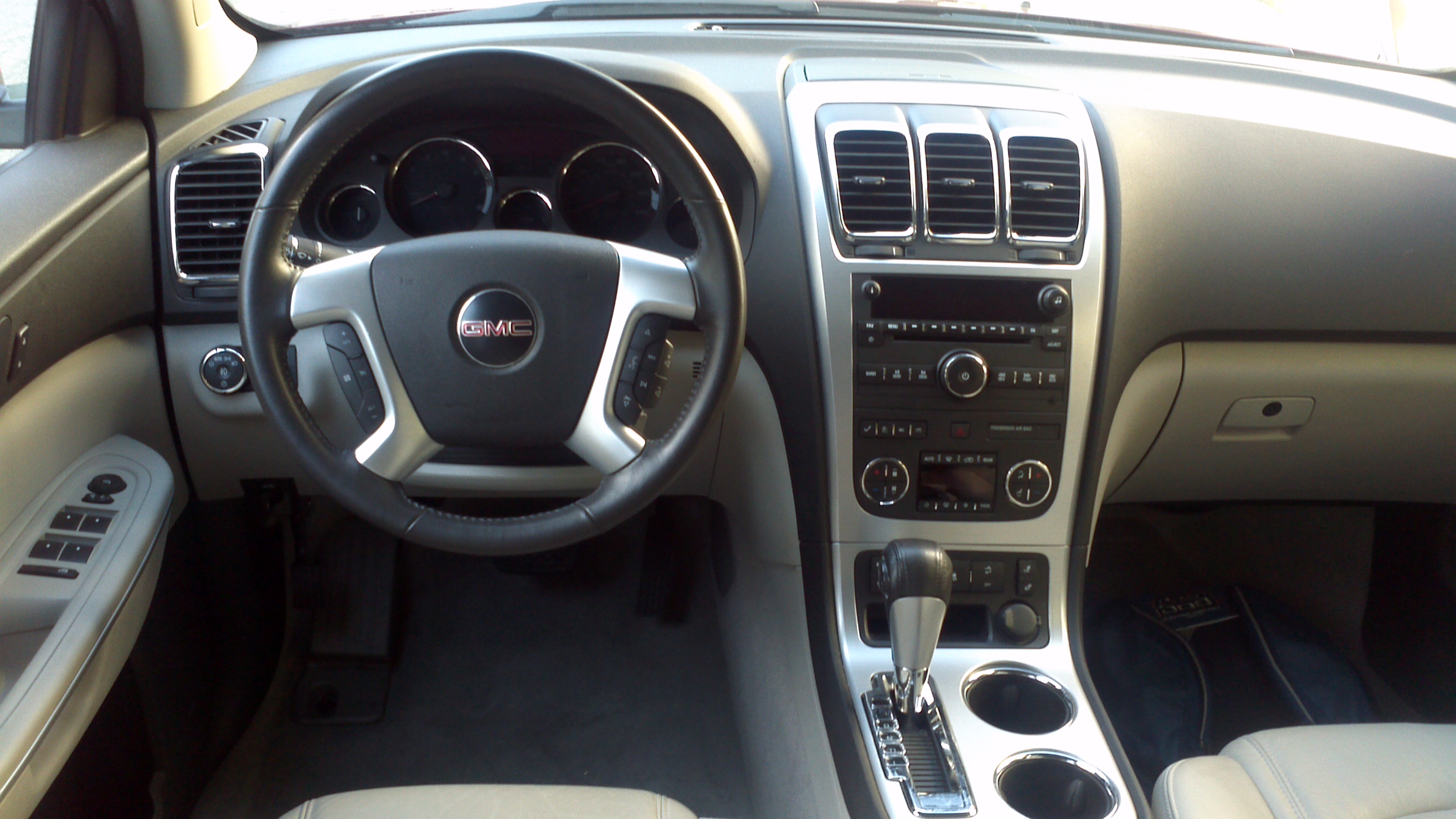 From the moment you first drive the Acadia it’s obvious that it’s eons more advanced than the old truck based Envoy and Jimmy. Unlike its brutish predecessors, the Acadia is not a chore to drive. The powertrain is an ideal match for this vehicle. The 3.6 liter V6 is pulled directly from the acclaimed Cadillac CTS and is responsive, smooth, and powerful. The highest output is an admirable 280 horsepower. Accelerating onto a freeway is not at all intimidating and the truck…er….SUV gets to 70mph with no trouble. Full throttle accelerations provide almost g-f