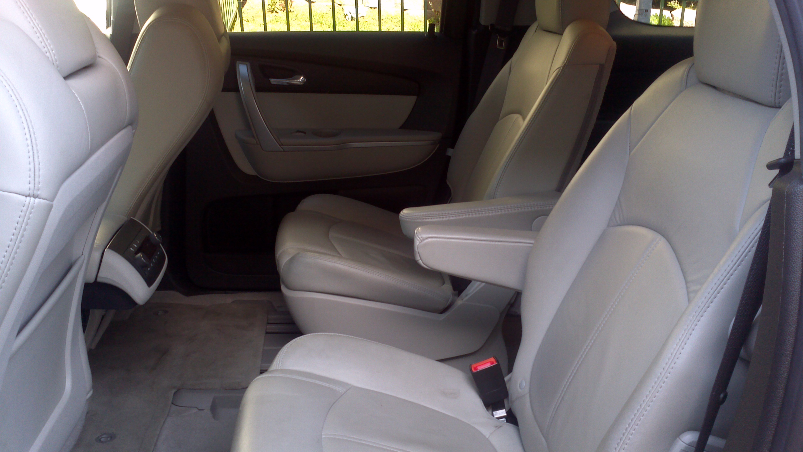 As good as the Acadia is, this is the part when the kinks in the armor begin to shine through. Upfront the story is excellent- there’s loads of leg, knee, shoulder, and head room (or any other body parts you wish to add). It’s a relaxing and comfortable place to pass the hours. Both seats are power operated as well as heated. However, working back to the middle row is where things take a not-so-flowery turn. The two center-row seats have a number of manual adjustments and can slide back and forward as well as recline. But the seat bottom cushi