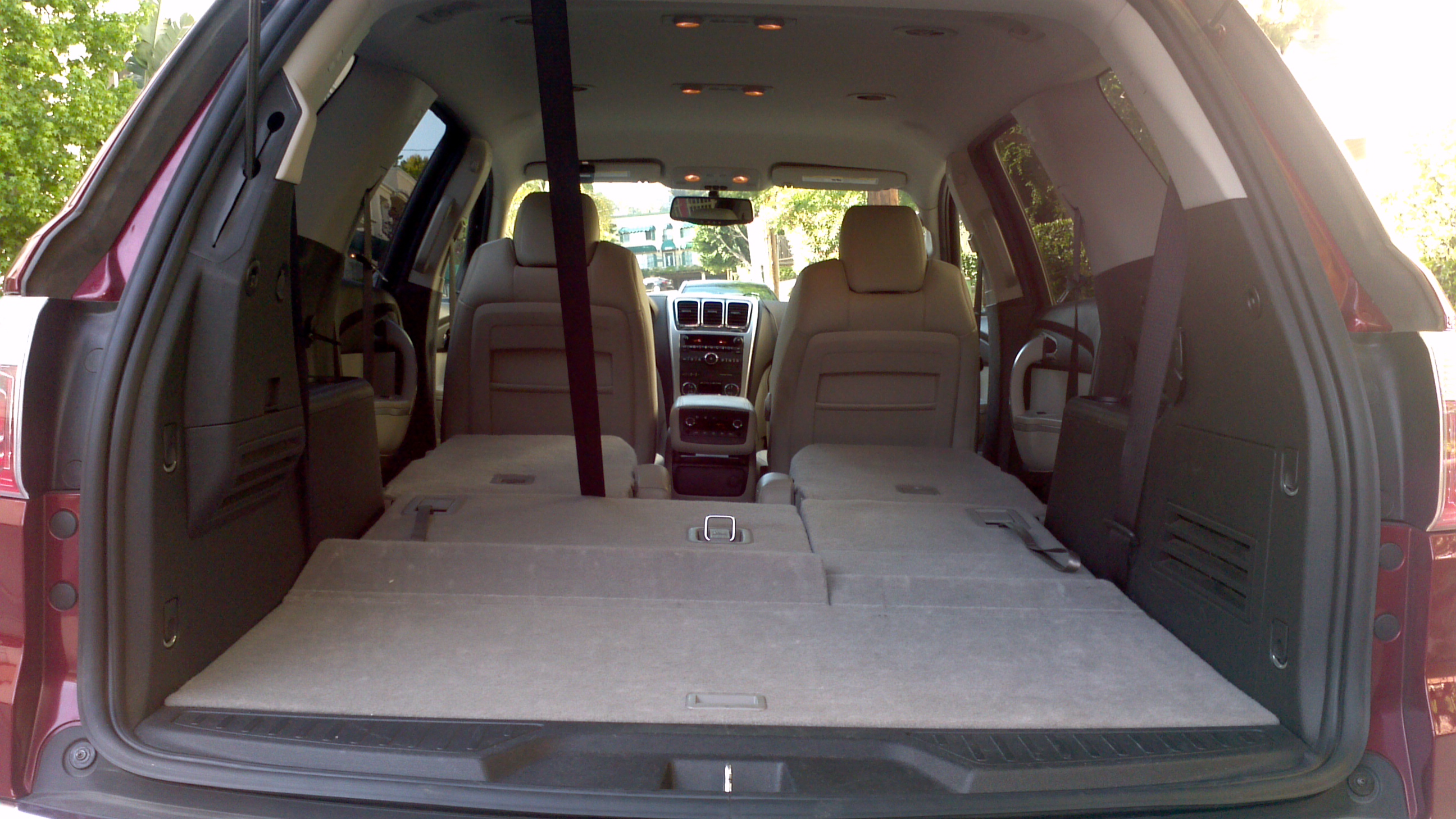 seats. Due to a high roof line, headroom is sufficient throughout the entire cabin. In all fairness, most of the Acadia’s competitors have the same issues and the third row is typically best left for children. If you need more space, suck up your pride and get a legitimate minivan.