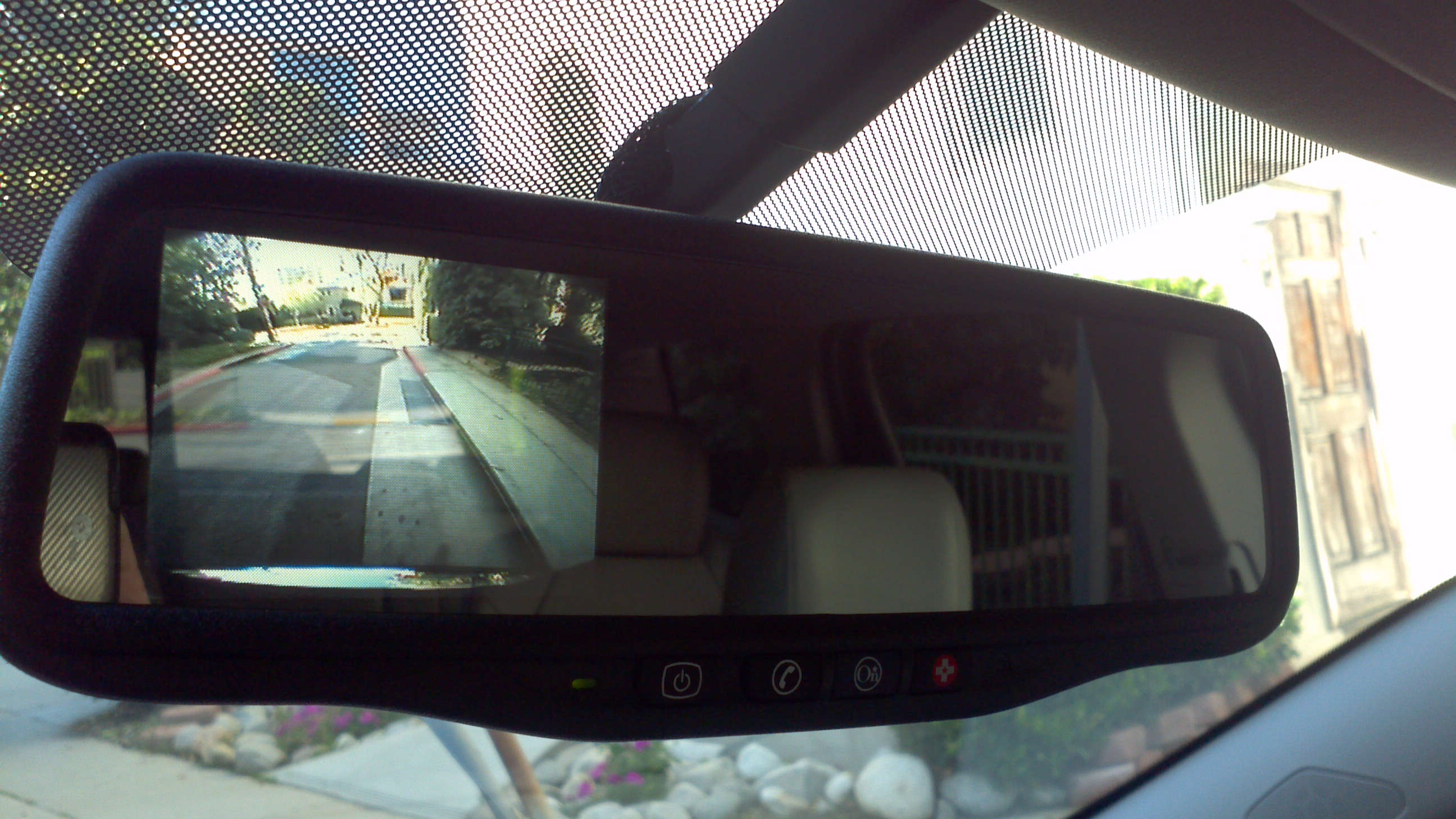 Visibility is decent all around with a clear view of the road through the large windshield and relatively thin, and non obtrusive, roof pillars. Even though the rear windows are large, it’s a long way back behind the third row seat and parallel parking can be daunting in this large vehicle. Luckily, there is a sensor that lets out an audible alert if an object is directly behind the car, along with another very neat trick- a back-up camera that is integrated in the rear view mirror that appears anytime the car is in