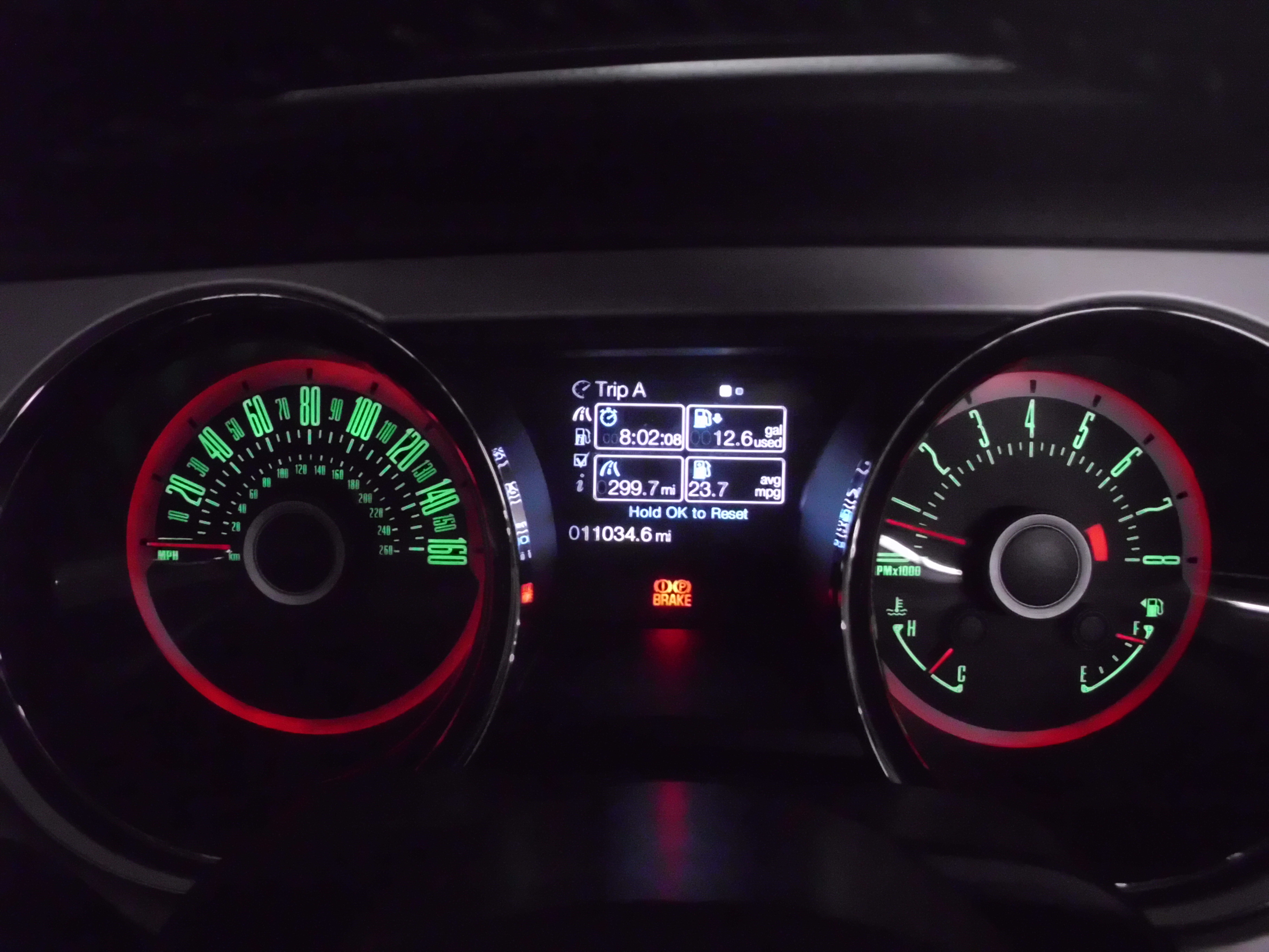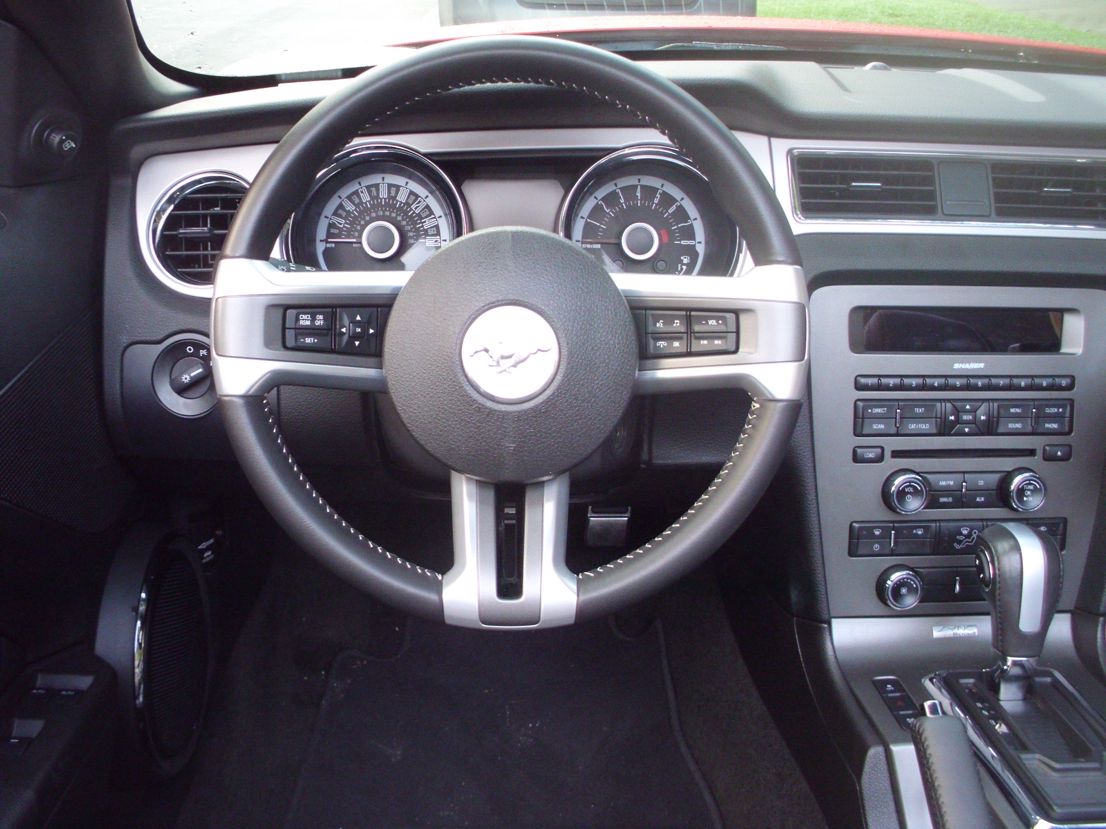 The base price for a Mustang coupe starts at $22,200 and exactly $5k more at $27,200 for the convertible. Ours was the Premium trim, which added upgraded wheels, leather seating, power driver’s seat, SYNC, color adjustable gauges and ambient lighting, auto-dimming rear view mirror, upgraded interior trim, and an eight speaker stereo system with satellite radio and iPod/USB connections. bumping the