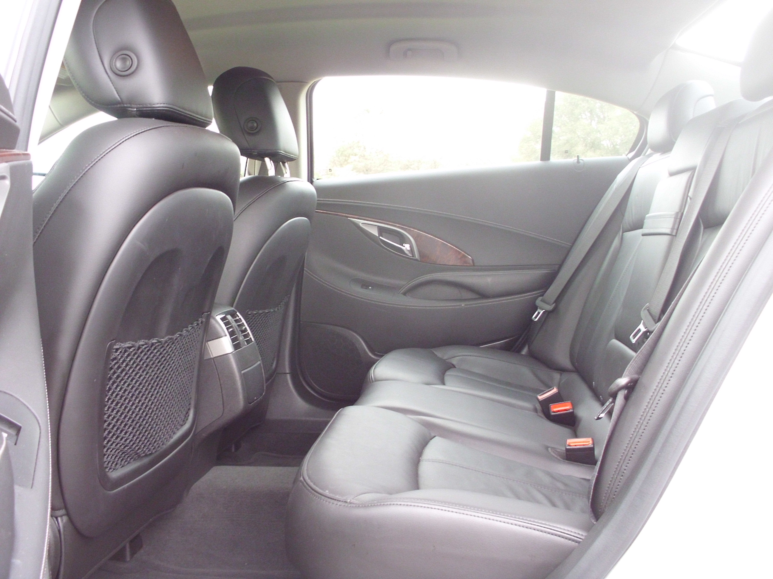 Which is a good thing, because the cabin of this car is a pleasant place to be.  Seats are firm and grippy front and rear, and there is plenty of room for five people.  The front seats have a multitude of power adjustments and seat heaters.  The rear is particularly hospitable, offering plenty of leg and knee room for someone my heightDSCI1131 (6,5”) with someone of equal stature up front,  This is where the LaCrosse’s chauffeur heritage in China shines through.  Some longer limbed drivers may find knee room lacking upfront due to the wide console.  Any noises are almost completely hushed.  Only at 90mph was there minimal road noise, otherwise the Buick’s interior feels as solid and isolated as a bank vault from the outside world.  Entry and exit are easy front and rear with wide door openings and a taller roofline.