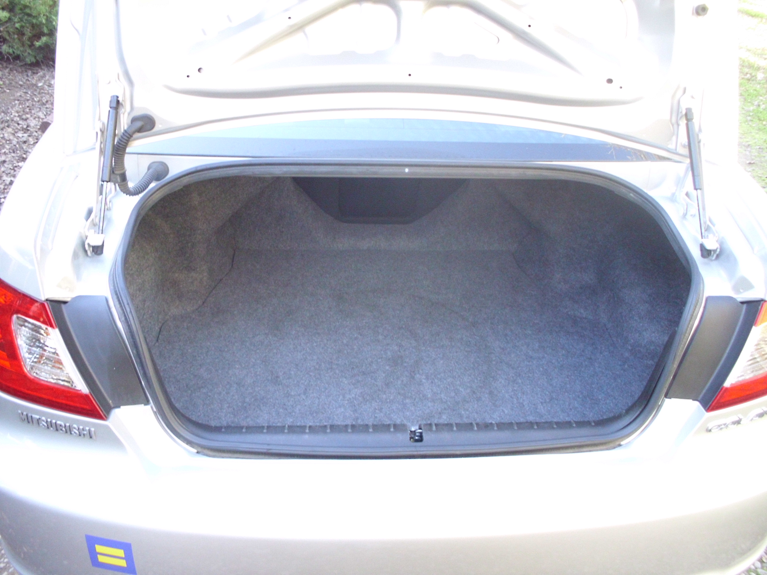 Another feature lacking on any Galant is a folding rear seat. This seriously hampers the car’s versatility and cargo hauling capabilities. Better think twice before hauling that bike or large picture frame in the Galant. As a tease, the trunk does have a pass-through for skis, which is only helpful if you have skis…..or a pogo stick. Otherwise, the trunk is a decent size at 13.3 cu. ft and has a usable shape. The liftover is low and the opening is generous, supplemented by gas strut hinges that cost more but free up space for luggage. Thank you Mitsubishi! The Galant also does hide a spare tire under its cargo floor.