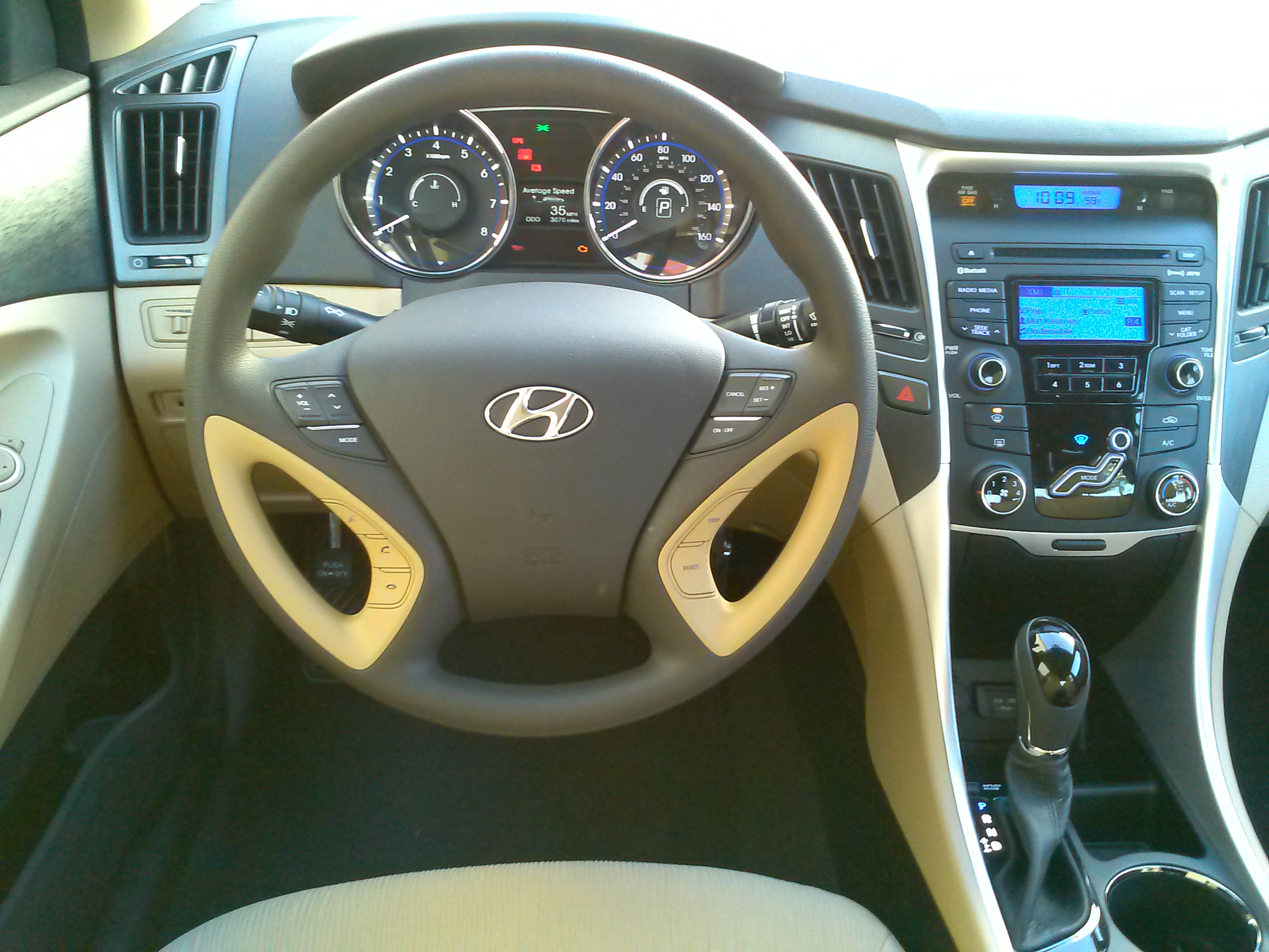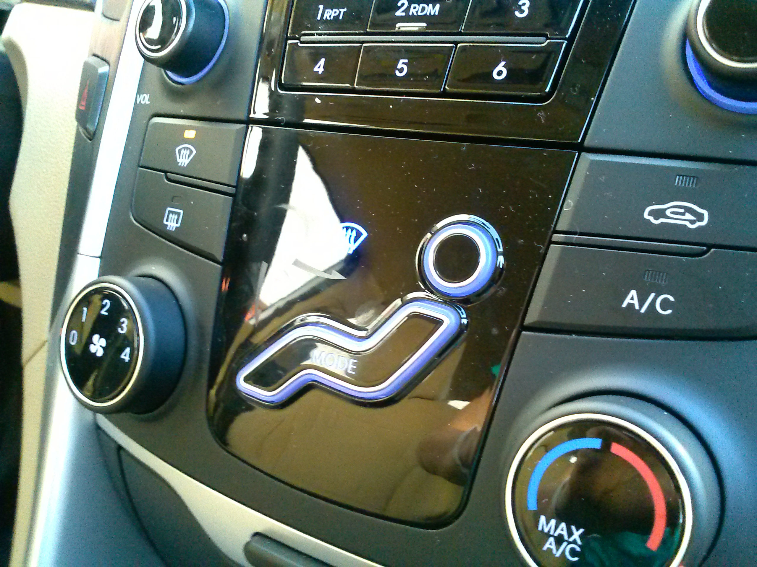replica of the one used in numerous Volvos for the past decade. Not only is it ergonomic and tidys up the controls, but also makes for a good conversation starter. It is a unique feature and the air flow through the vents is controlled by him. Unlike the Volvos which have separated portions of his body to direct air to the feet and head, he is one individual button on the Sonata and it was a letdown to know that his