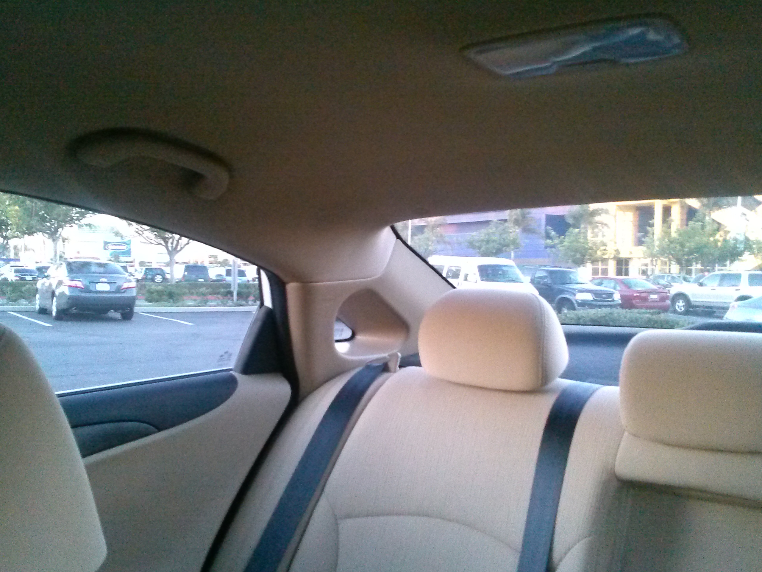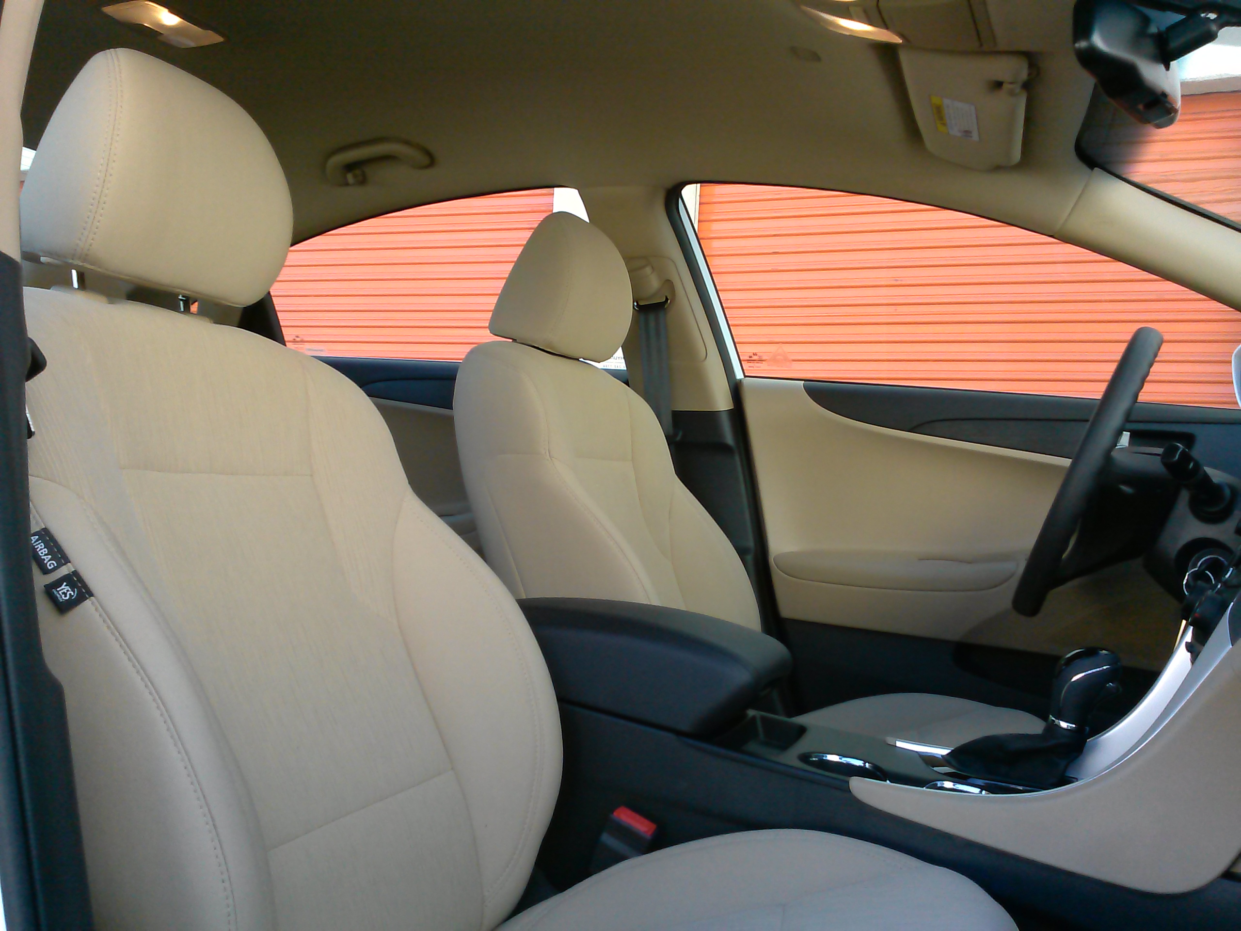 leg room was identically impressive. There is tons of knee and leg room back there as well. Front head room is sufficient, but due to the slopping rear roof line, taller passengers in the back seat could bump their noggins on the headliner. Given the Sonata’s swoopy style and high beltline, it was surprising to find that the cabin was airy
