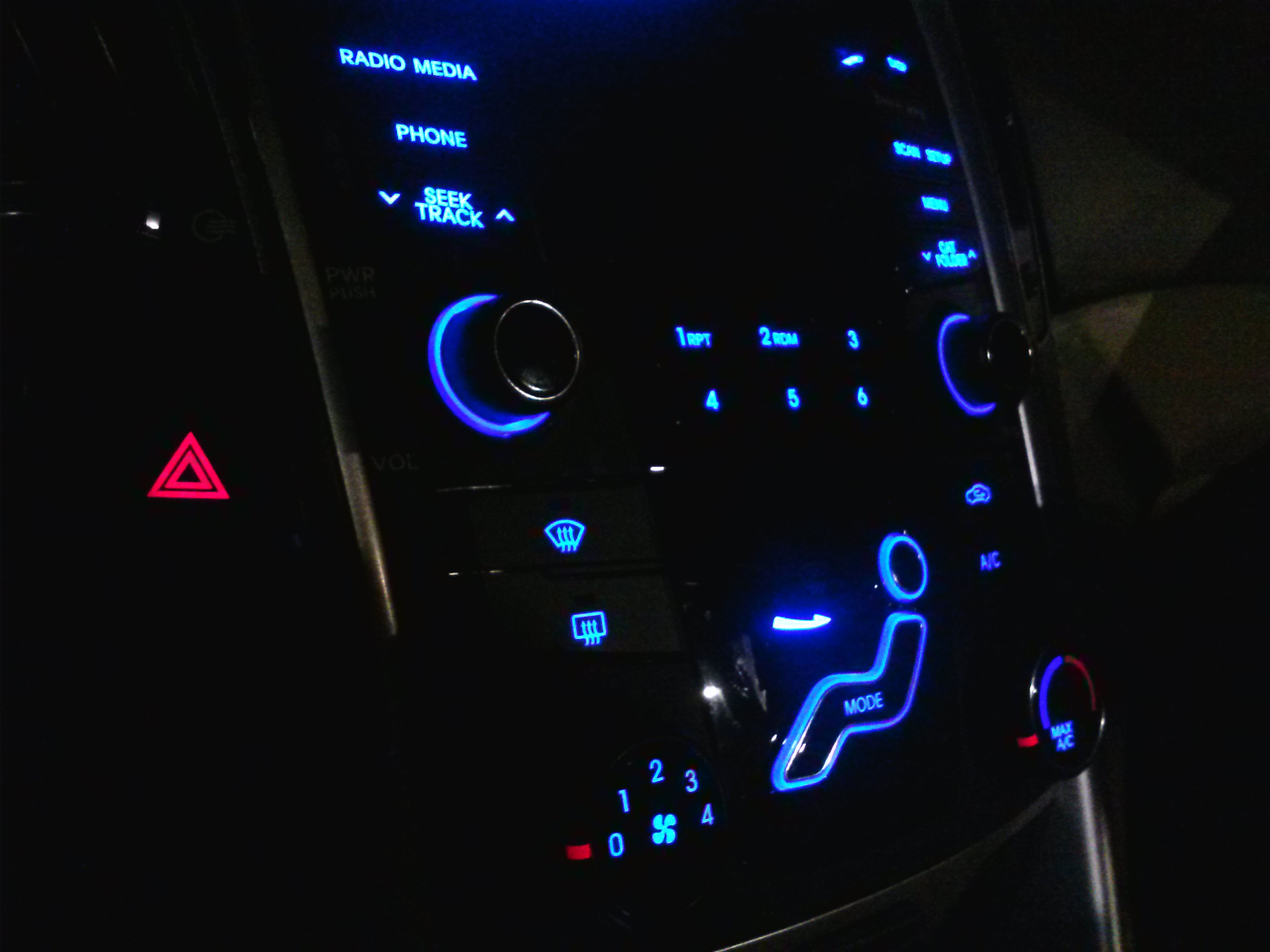 head is just a decoration- it doesn’t operate anything. Oh well, the Hyundai costs significantly less than the Volvos and ventilation man is still easy to use and a creative idea from the norm. Radio controls are also simple to operate with twist knobs for the volume and tuning, and have a large, easy to read font on the display. As with most Hyundai’s, the buttons are backlit in a very attractive and soothing blue.