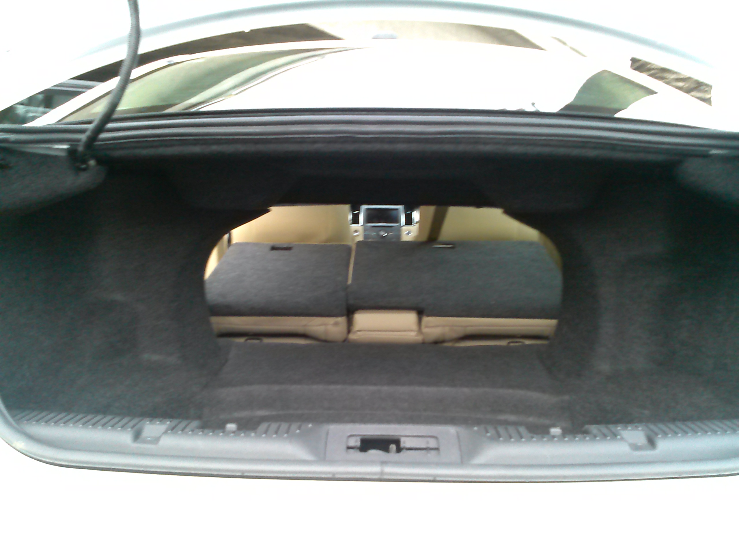 300, Nissan Maxima, and Chevrolet Impala, by at least three cubic feet compared to the next biggest in cargo carrying. Not only is the space back there immense, but the trunk is square, well-shaped, and has little wheelwell intrusion. Trunk hinges are the expensive and elaborate gas strut variety and won’t crush any goodies back there. The seats do fold 60/40 and