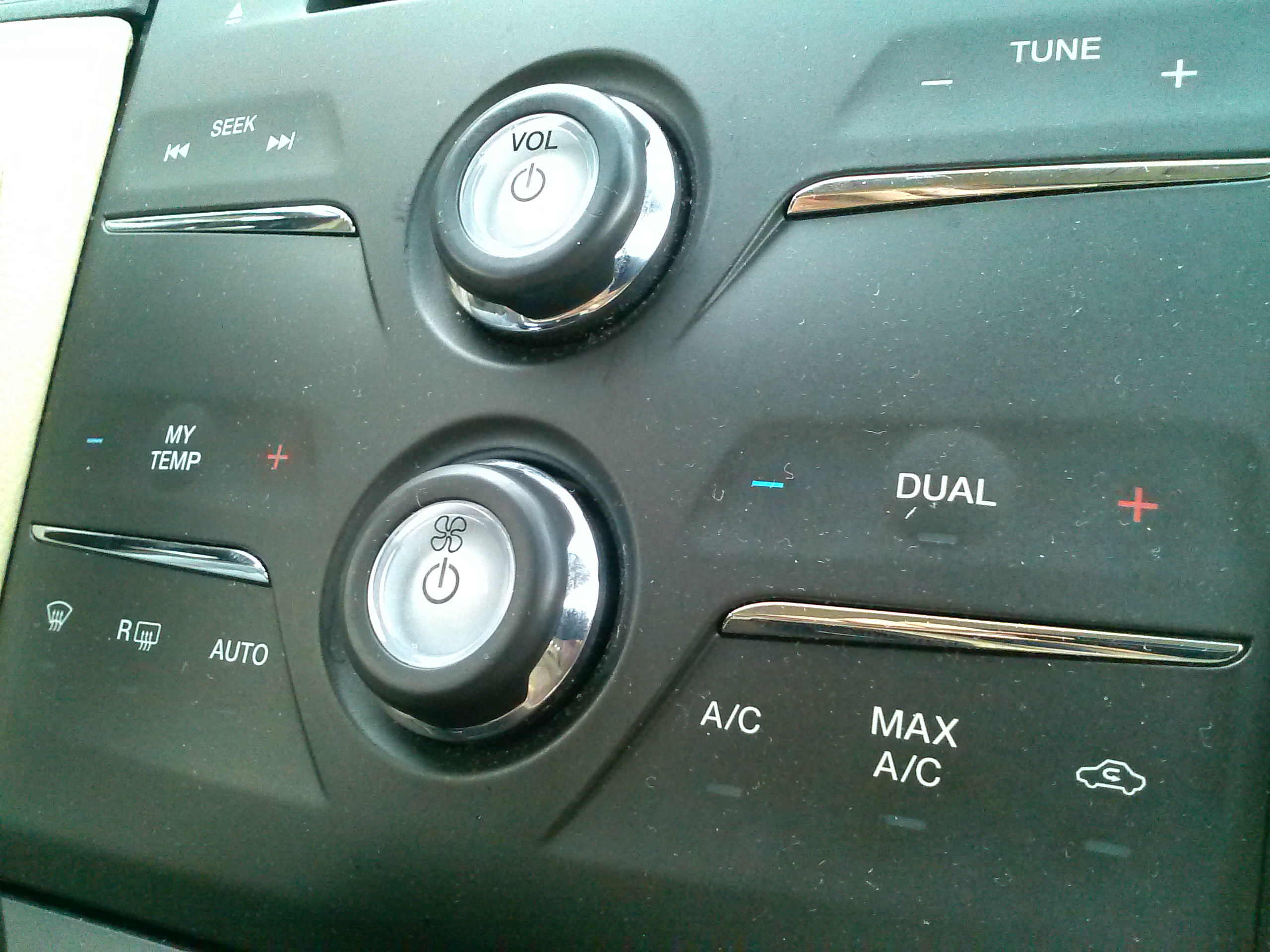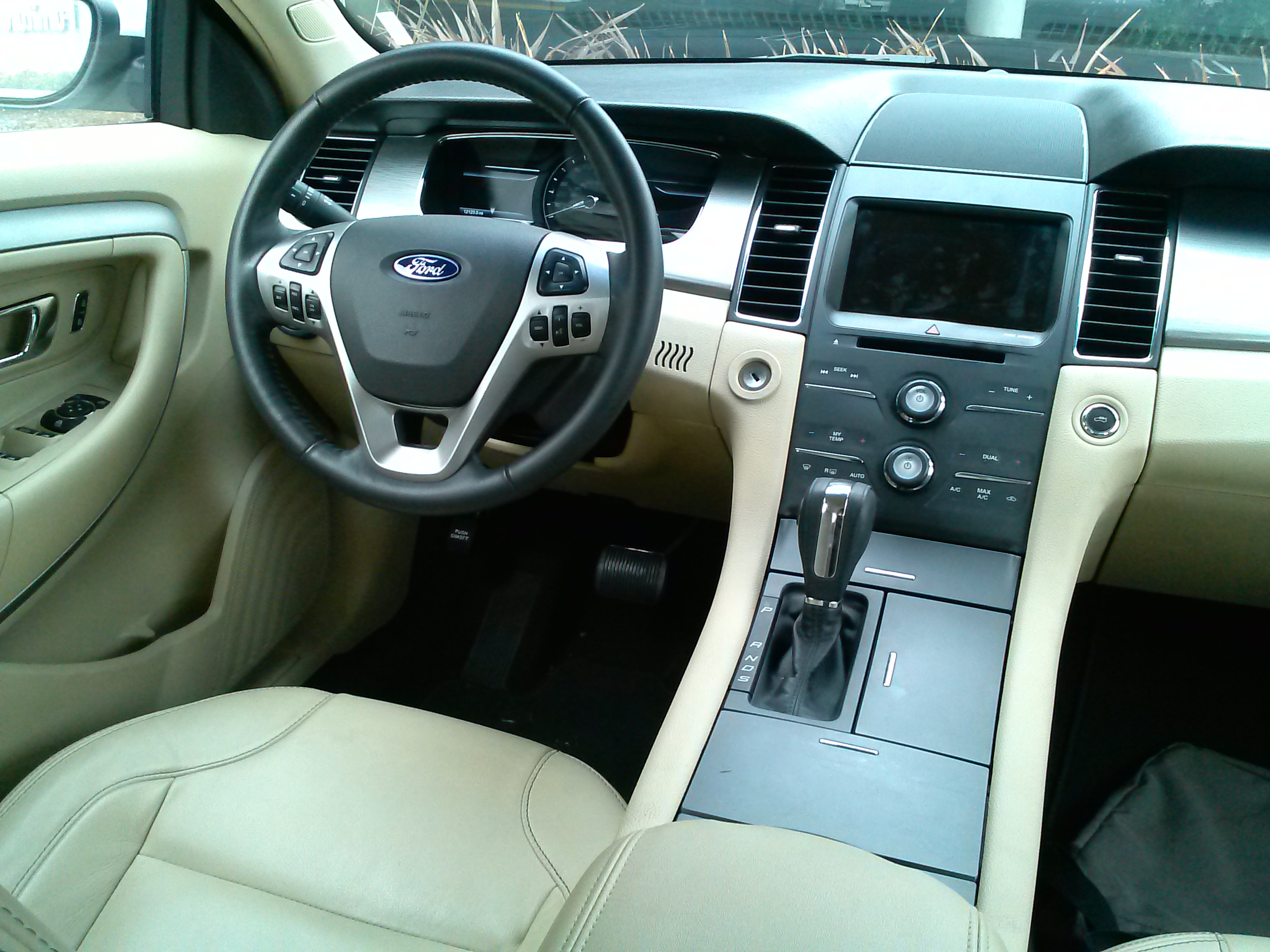 promise upgrades in response to complaints, as well as to criticisms of reliability and system crash issues. Microsoft came through on this commitment and is now offering the second 3.5.1 version on the 2013 Taurus. Although not as straightforward as the touch screen on the Chevrolet Volt and some other vehicles, the new system is much less frustrating and more manageable. Making radio adjustments were simple and there is an infinite amount of personalization options for tuning, connectivity, and language. The only issue I did encounter was that while changing sound settings, the system would unexpectedly alter the volume or other programs. Rome wasn’t built in a day, and neither were the bugs in MyTouch resolved. Although I’m a traditionalist and prefer old-fashioned knobs and buttons, the new program is tolerable and a huge improvement over the original. The screen is a magnet for dust, and finger prints will be constantly present on the interface. Ford was smart enough to use real knobs for fan speed and radio volume, two commonly used adjustments, just below the screen.