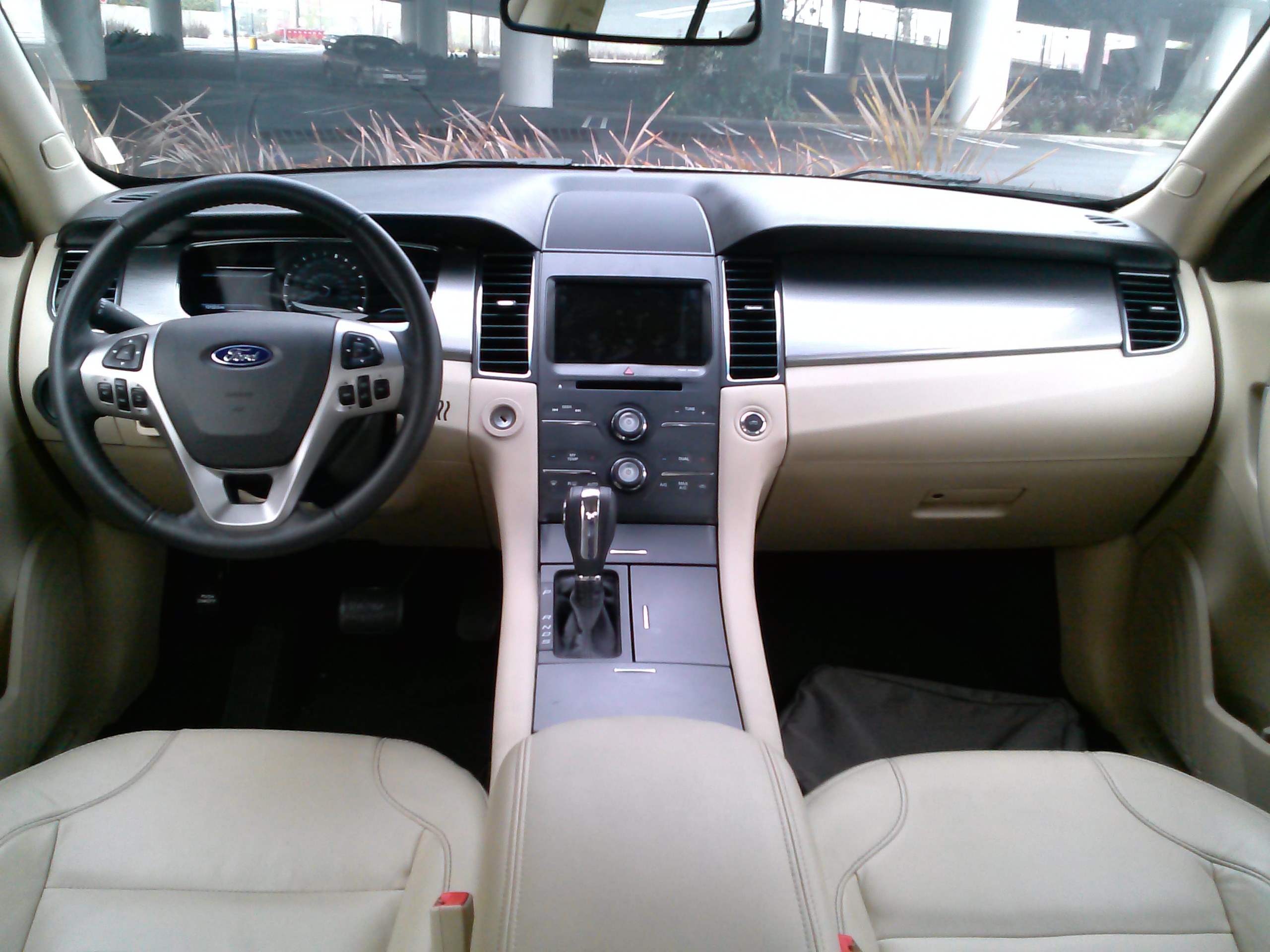 and easy to read. Browsing through the menus is done with a jumble of buttons housed in the steering wheel, along with the cruise control and bluetooth. They seem overwhelming at first, but make sense after a while, yet still take away too much driver attention. The window sill is high and some roof pillars are thick, adding to a claustrophobic and confined feeling in the large cabin. Backing up can be a guessing game due to the high decklid and narrow mailslot rear window. Like many other Fords, the Taurus does feature folding, convex side mirrors to help minimize those blind spots.