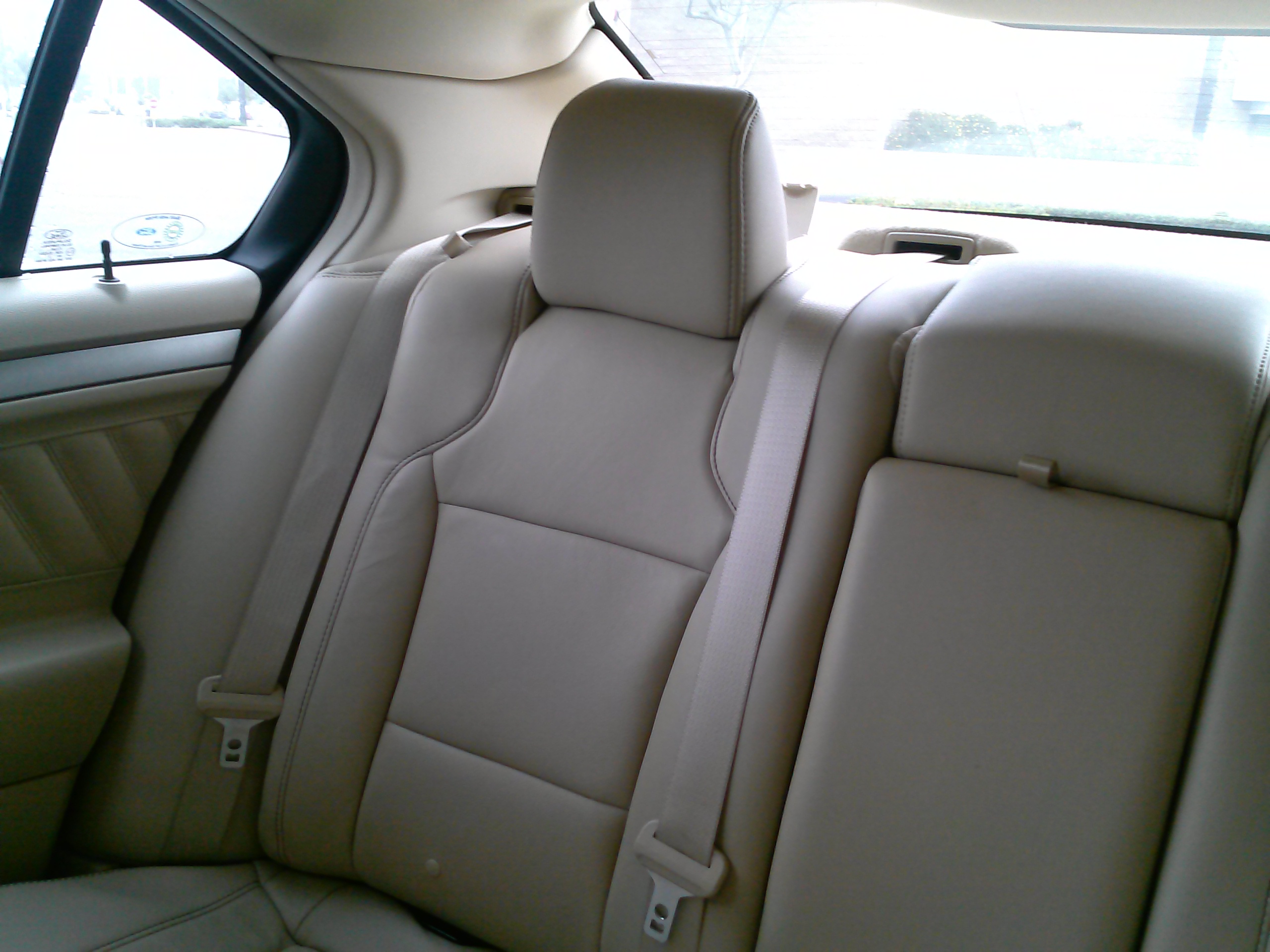 Front space is expansive in regards to leg and head room. Even though the center console is as wide as a Jewish deli’s counter, surprisingly it doesn’t infringe upon precious knee space, which are issues in the Focus and Fusion. The long reach to the pedals and firewall help in this regard. Nicely padded armrests in the front doors and on the center storage shelf ensure a comfortable leaning stance while driving. Those opulent leather front seats provide the right amount of firmness as well, but the seat bottoms are a little flat and low to the ground. Both front seats are power operated and height adjustable, and along with a tilt and telescoping wheel, a comfortable driving position is easy to find. There’s just a casual, relaxed atmosphere while settling in the driver’s seat.