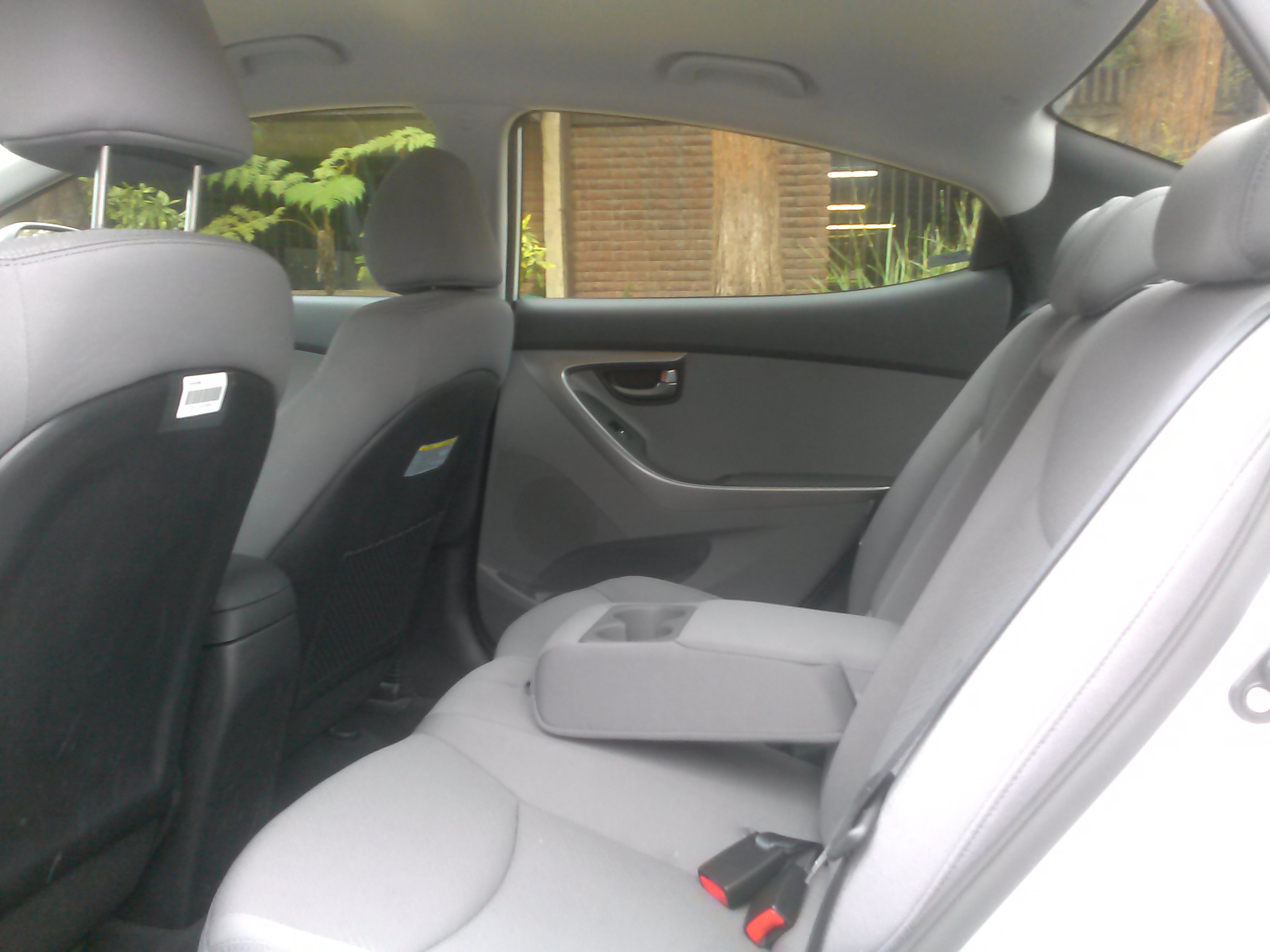 In the back, things get a little tighter. Legroom is decent yet long-legged knees will be rubbing against the hard-plastic cladded front seatbacks. I’ve never been a fan of plastic backings on front seats. Not only does it look cheap, but it can prove to be uncomfortable in these situations when thinly padded knees are pressed up against them. Headroom is compromised by that sleekly raked rear roofline. Taller passengers may find themselves in the chin-to-chest position and the vast rear window will undoubtedly lead to rear occupants scoring an unexpected tan. But there is some good news back there; entry and exit are good due to wide swinging doors and large openings. The center floor hump is almost non-existent, making it easy to slide across the back seat or cram in a third, middle passenger. The Elantra’s roominess overall is fine and better than some competitor’s, such as the Focus, but not as good as the Subaru Impreza.