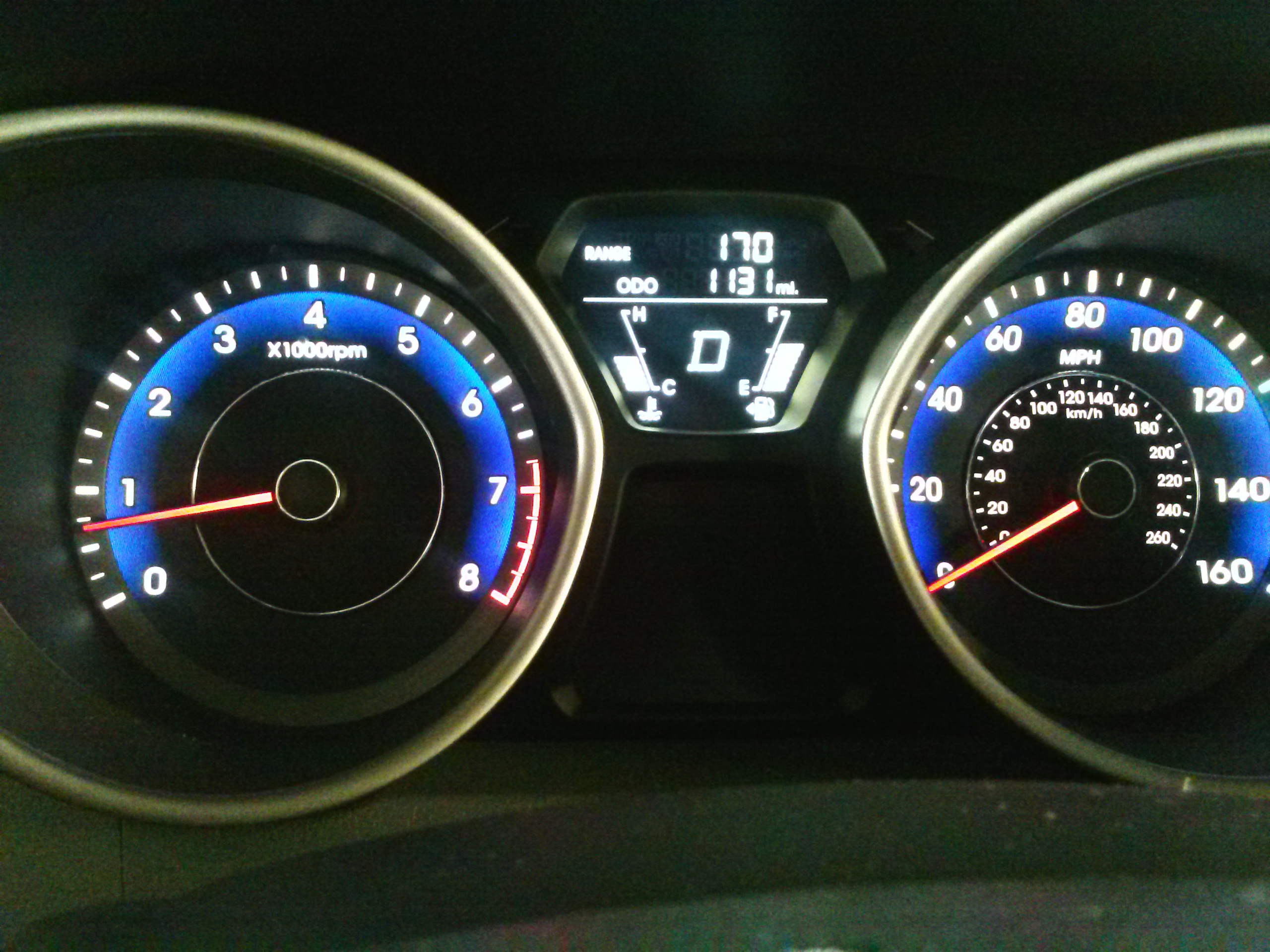shared with other Hyundai products and is sensible and logical to navigate through. Lastly, cruise control buttons on the steering wheels fall right at hand and are back-lit at night. Gauges are clear, crisp, and lit in Hyundai’s attractive blue lighting.