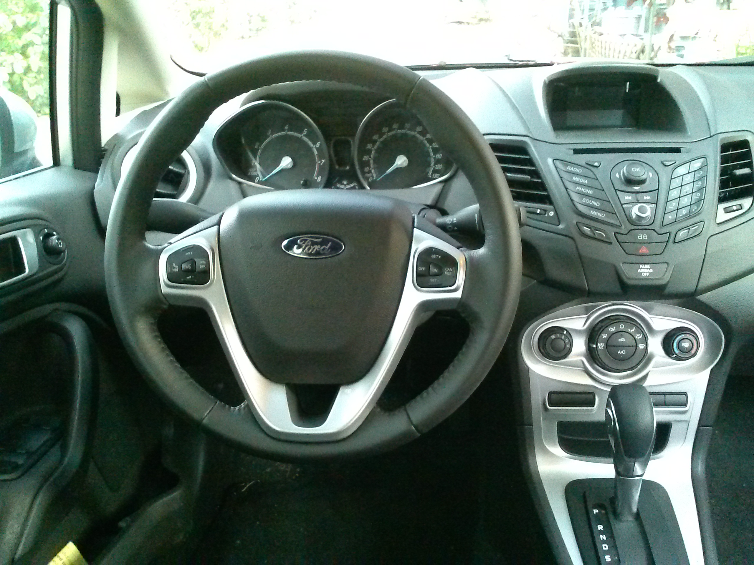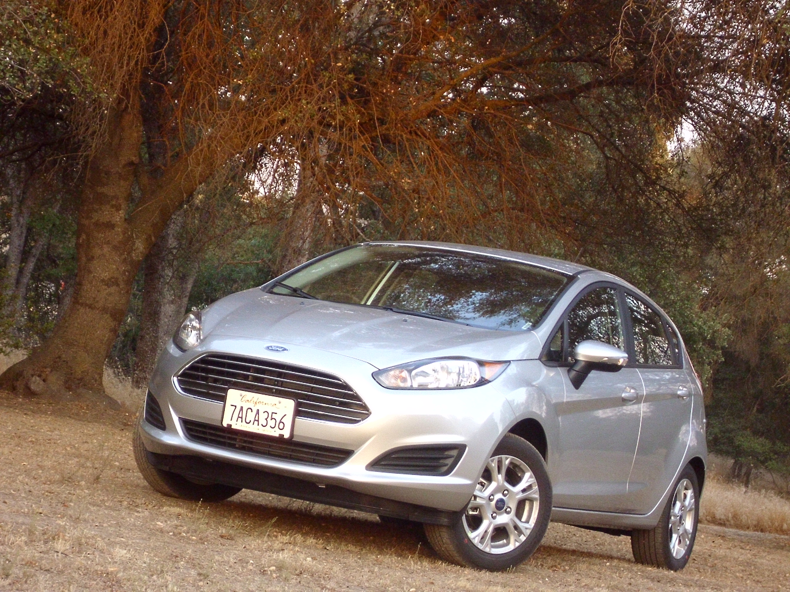 functions (iPod/USB audio interface, Bluetooth phone connectivity, voice controls, some app-based services and certain safety communications functions), an auxiliary audio jack and, for hatchback models, a rear wiper. Moving to the next level SE, like ours, adds keyless entry, power windows, exterior mirrors with side marker lamps, cruise control, upgraded cloth upholstery, a trip computer, 15-inch painted aluminum wheels, metallic interior trim, a front center console with armrest, a leather-wrapped steering wheel and ambient lighting. The SE hatch starts at $16,050 and the PowerShift automatic tacks on an extra $1,095 to the cost. Once destination is added, the grand total for our Ingot Silver tester was $17,940 . It may seem like a lot, but other economy cars are cashing in at about the same price and lack the technology and driving experience that the Fiesta offers.