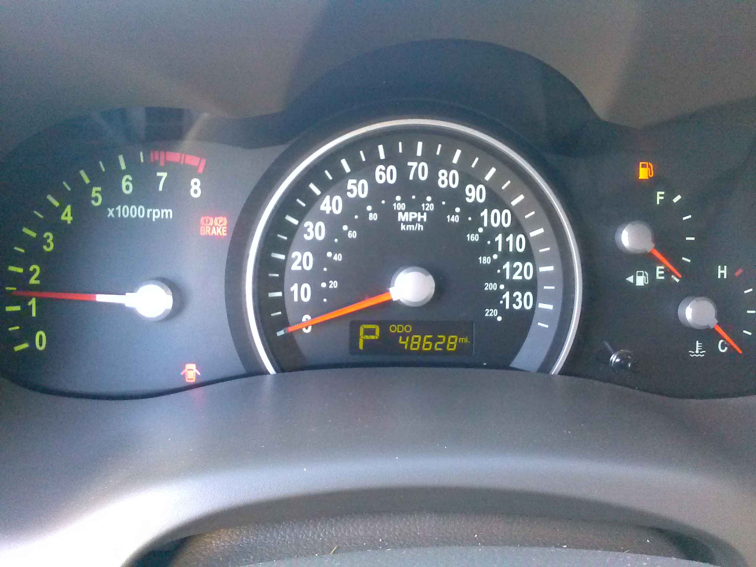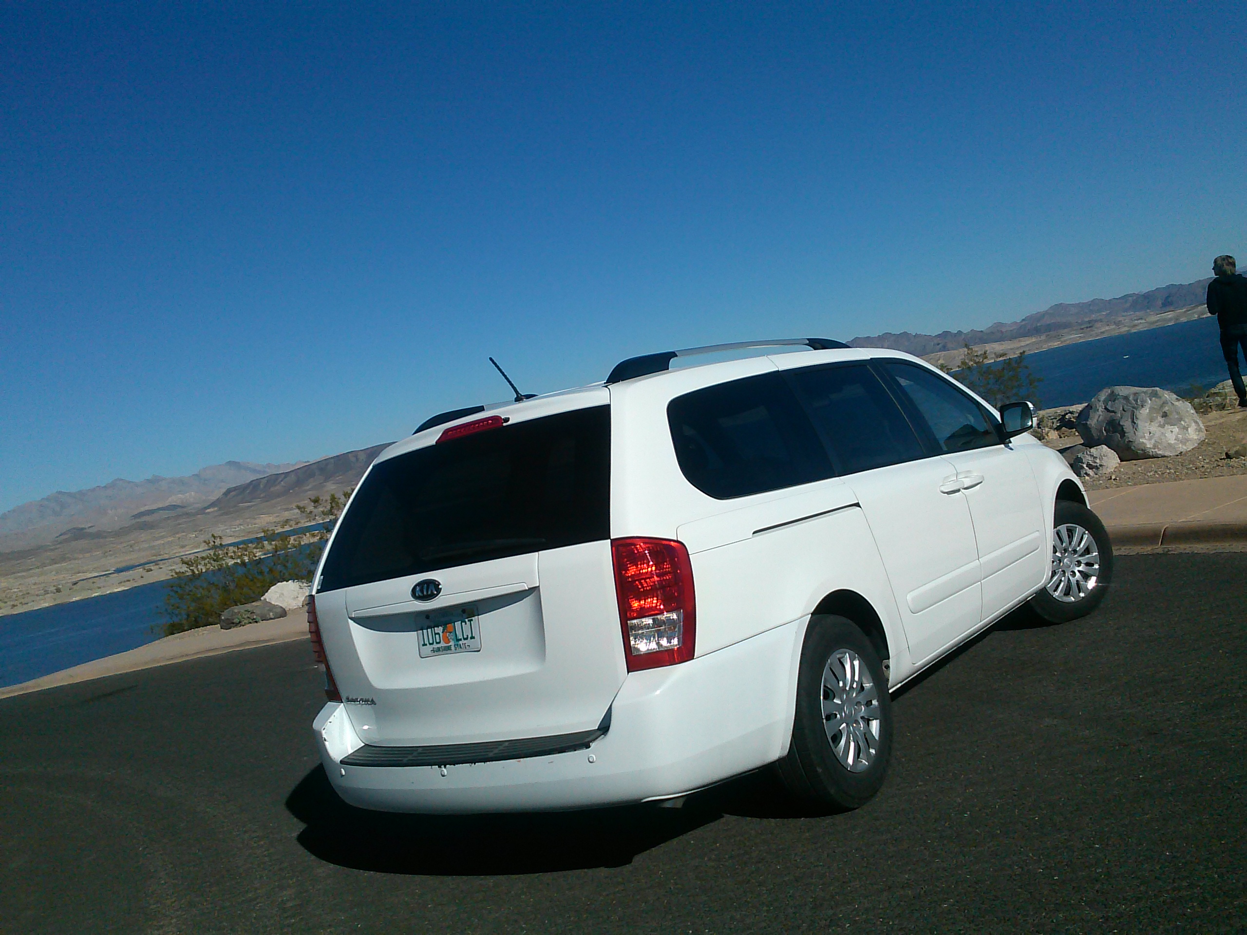 Our Sedona had 48k miles of punishing rental duty under its belt, quite high for a rental car. The van was in good shape mechanically and still felt solid overall. The only defects were a slight creak occasionally coming from the dash near the radio on rough roads, and the convex rearview mirror (looking over back seat passengers and their antics) was MIA completely. That wasn’t the only thing missing; all five back seats were lacking their headrests. I don’t consider that a defect, but more of a case for “Unsolved Mysteries.”