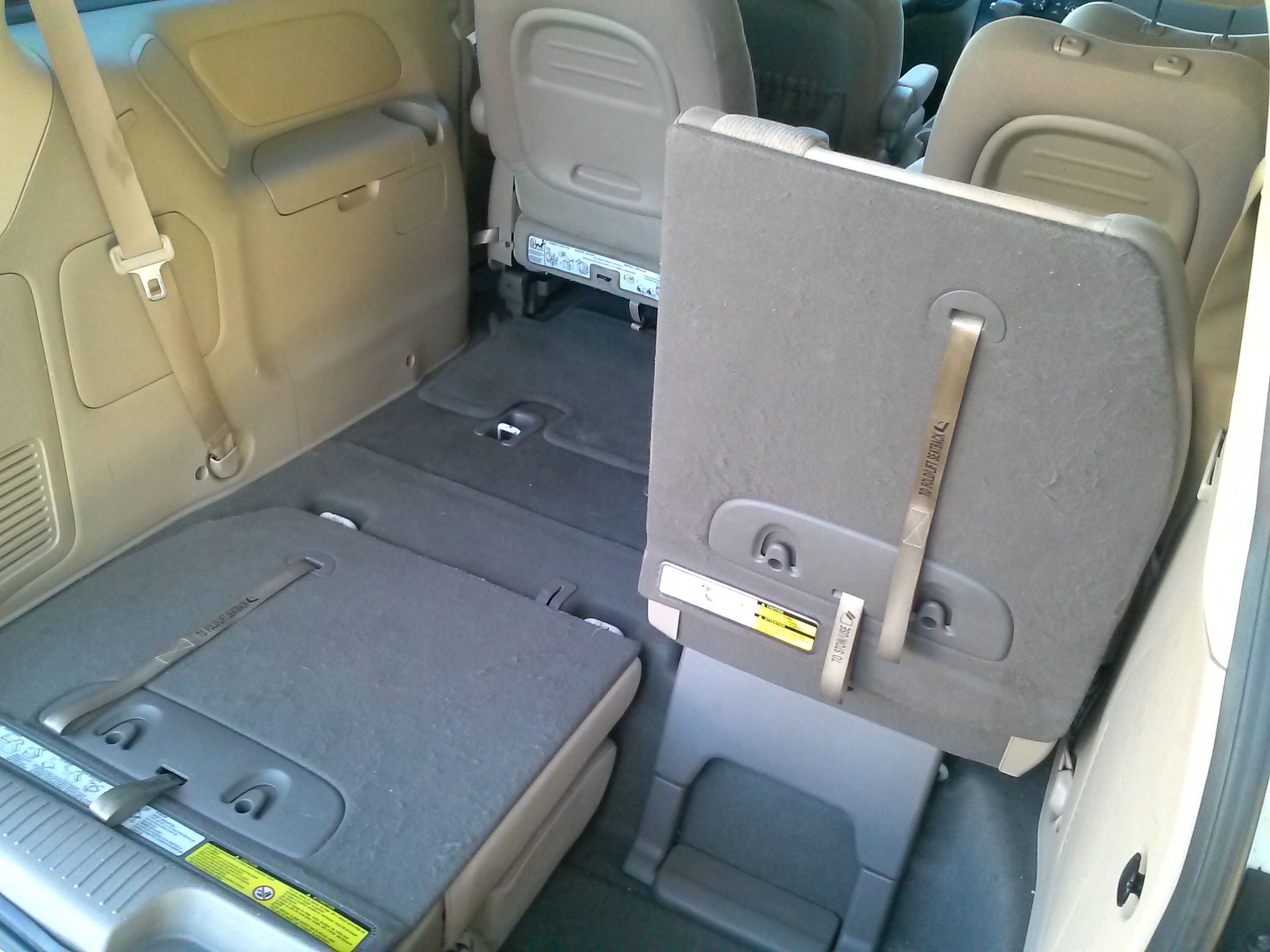 t is in place until the seat is flipped back and it’s held in by a secondary brace on the floor. If it’s not, the steps have to be repeated. It wasn’t too complicated to figure out, but proved to awkward at best. To the Sedona’s defense, the Sienna and Odyssey have similar setups, but the Caravan does have its unique Stow-N-Go system and the Quest’s middle rows fold flat into the floor.