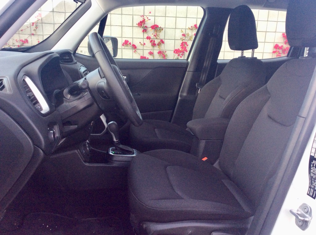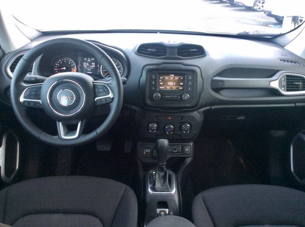 Prices on the Renegade start at $18,445. The MSRP’s are tempting, but these are lightly optioned cars that have a manual transmission and no air conditioning. However, standard equipment still includes: 16-inch steel wheels, manually adjustable mirrors, remote locking and unlocking, push-button ignition, power windows and locks, a rearview camera, a height-adjustable driver seat, a fold-flat front passenger seat, a 60/40-split folding rear seat, cloth upholstery, a removable cargo floor panel, a tilt-and-telescoping steering wheel, a driver information display, Bluetooth, a 5-inch touchscreen, and a six-speaker sound system with a USB port. We included the $1,495 Power and Air Group that adds such delicious goodies as air conditioning, cruise control, and heated, power side mirrors. Going for the automatic transmission is free, but must include the 2.4 litre engine, an added $1,330. Once destination charge was added, our alpine white Renegade had a sticker price of $24,215.