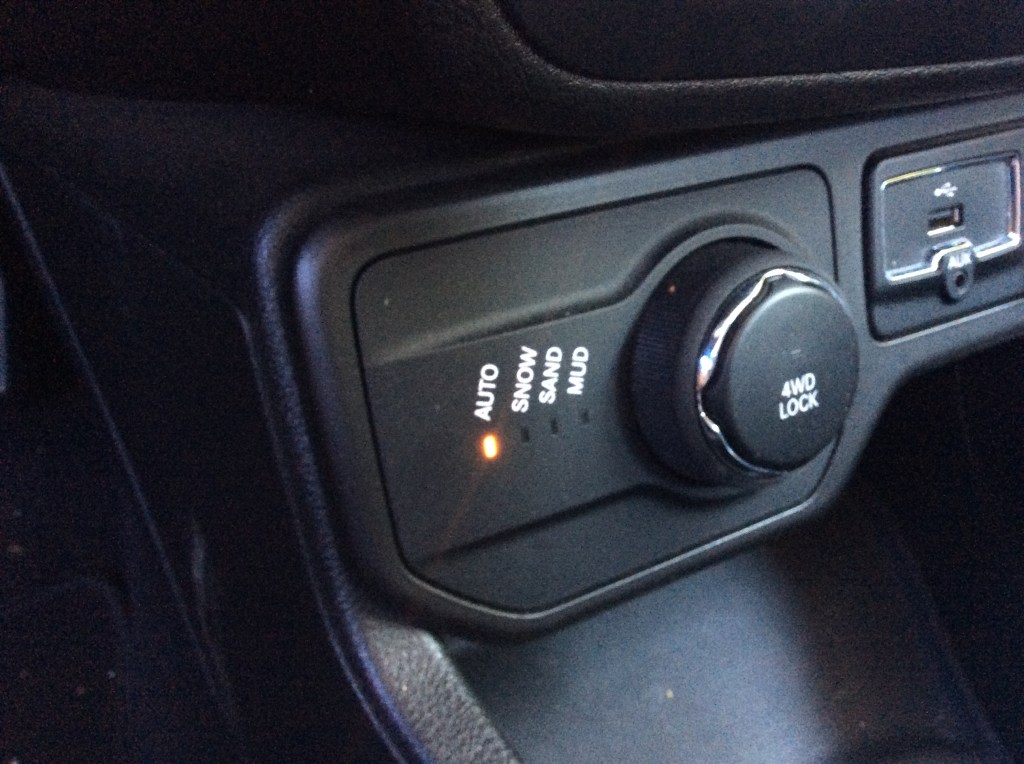 The steering wheel is borrowed directly from other Jeeps and anyone who has driven any Chrysler product in the past 10 years will feel right at home with the tactile wheel-mounted controls for the radio and cruise. Gauges are also clear and easy to read from the driver’s seat. The temperature and fuel readings are a digital set of bars, while the speedometer and tachometer are traditional analog gauges. The tachometer, instead of having the plain ol’ boring redline painted at the 6,500 rpm range, has a graphic of mud slung at those furthest reaches of the rev scale. It’s unique, playful, and reminds drivers that, yes, this is a Jeep