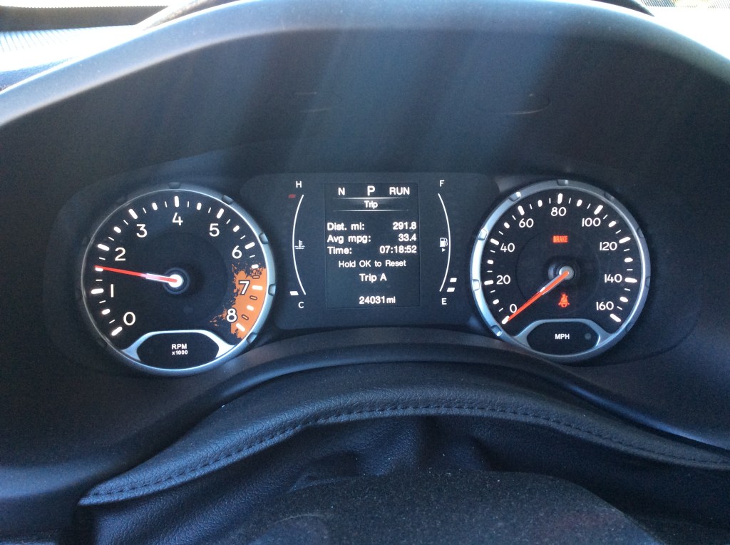 The EPA rates the Renegade with the 2.4 litre at 21mpg city and 29mpg highway. We blew past those numbers with some conservative highway driving, reaching a pinnacle of 35mpg over 200 miles. Even after 400 miles in a mixture of freeway, off-roading, and city traffic, we still averaged an impressive 32mpg. Even the Renegade was surprised, as the trip computer kept extending the range on our tank as the miles rolled past.