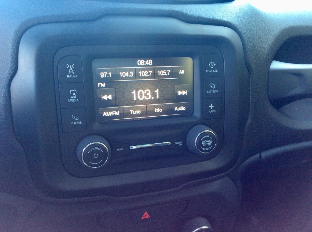 That’s not a bad thing. The ventilation controls are as straightforward as they come, and the Renegade shares the same UConnect interface with all Chrysler products. UConnect continues to be one of the most intuitive and responsive touchscreen systems out there. Sorting through menus and personalized settings is a breeze, and pairing the Bluetooth with a device only takes a matter of seconds. The 5-inch screen itself felt small and dainty on our Sport model, and a 8.4-inch screen is standard on all higher trims. It’s amazing what a difference…ahem…..three extra inches can do, but the system’s operation was still flawless on our base unit.