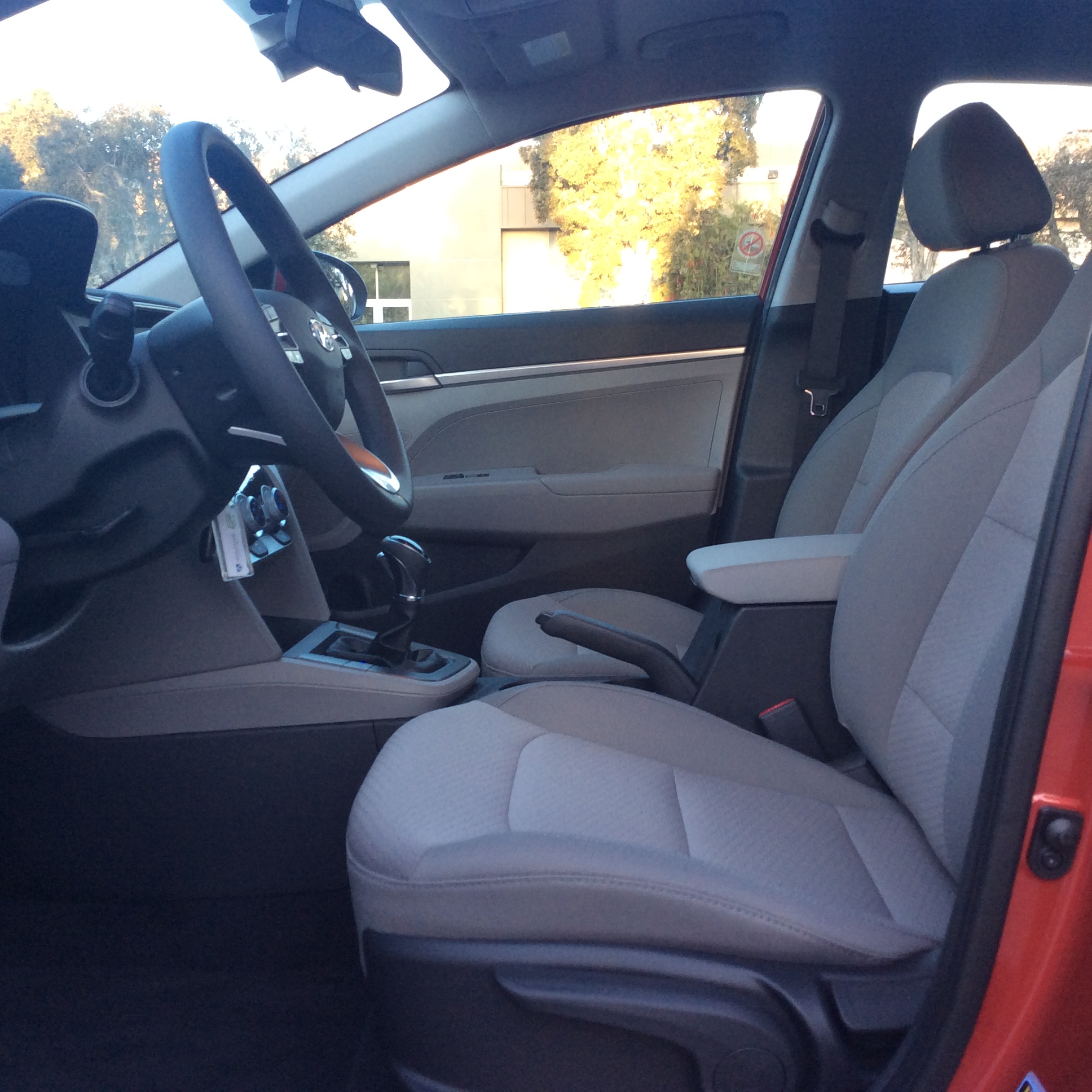 The 5-inch radio screen is actually smaller now on the SE trim than last year. As before, it’s still intuitive, straightforward, and among the best interfaces out there. Searching through menus makes sense and there’s no tricks. But, there aren’t a lot of personalization choices and the top half of the dash does look empty with such a small screen. Higher trim Elantras do get the 7-inch larger screen that was standard last year. Also on the M.I.A. list from previous base Elantras are a centre armrest and automatic headlights.
