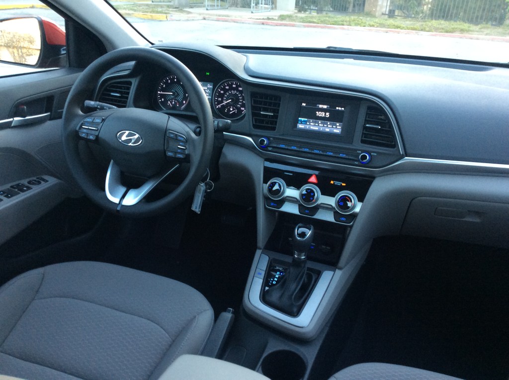 Prices for the 2019 Elantra start at $17,200 for the base SE equipped with the six-speed manual. The SE comes standard with 15-inch steel wheels, front disc and rear drum brakes, power mirrors, a rearview camera, height-adjustable front seats, air conditioning, a 60/40-split folding rear seat, Bluetooth, and a six-speaker sound system with the aforementioned 5-inch display and a USB port. The only option our test SE had was the automatic transmission, which consequently comes with cruise control. Once that was added, along with destination charge, our scarlet red Elantra was priced at $19,120. For that price, it represents solid value and does not feel like a stripped-down penalty box.