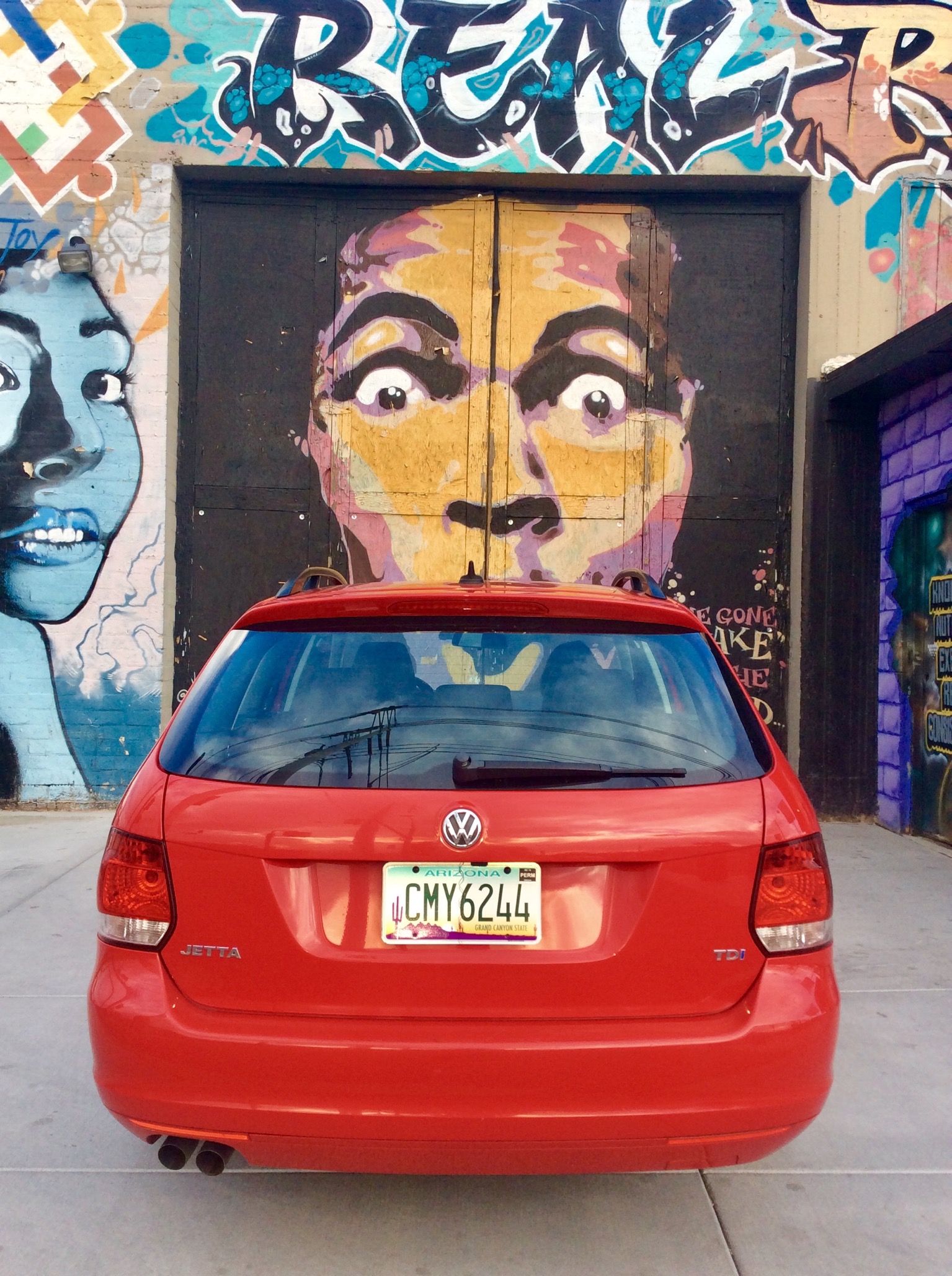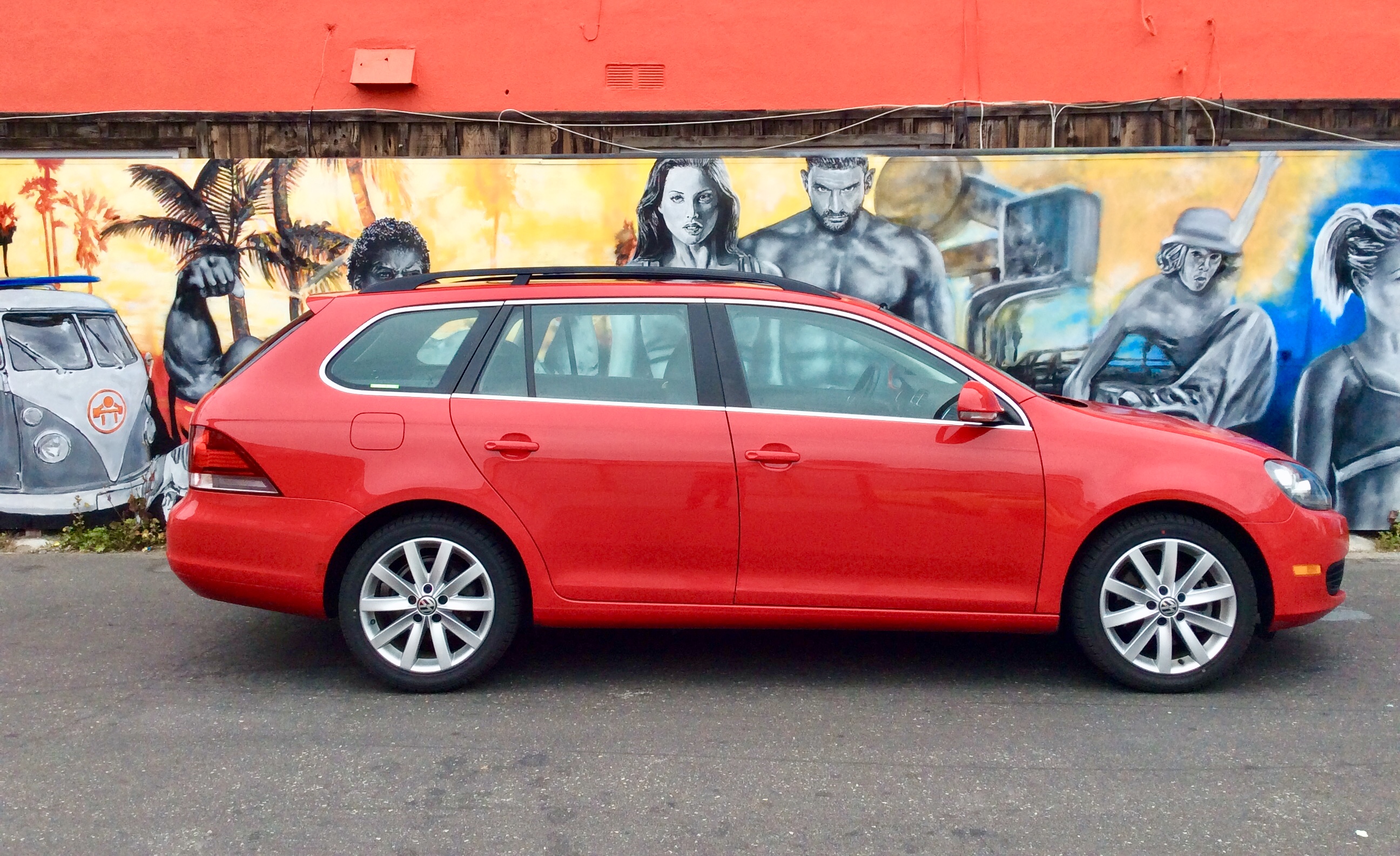 That’s when today’s hero, our Jetta Sportswagen affectionally named “Hans”, steps onto the scene. Rental lots are usually choked with cars that are less than two years old and quickly accrue 40k miles within that time. If you look at my prior reviews, most are inoffensive colours; white, silver, and grey, and are the most basic trim. But this time, I signed a rental agreement for a turbocharged diesel, red wagon built in January, 2014 with a very modest 39,000 miles. It was well-equipped with the optional panoramic sunroof, some dealer accessories like rubber floormats and cargo protector, and the remnants of a “Girls on the Run” decal on the back window.