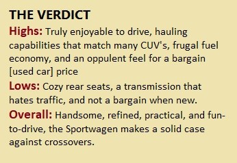 Between the satisfying rumble of the diesel, eagerness to hustle down the highway, fervid handling, and beautifully balanced ride, there’s an air of exclusiveness to driving the Sportwagen that is lacking in most compact cars. That gets the endorphins and the desire flowing.