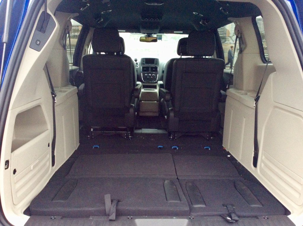 After some practice runs, I timed myself being able fold all five seats out of the way and convert the Caravan into a cargo hauler in 1 minute and 4 seconds. No tools were required, and my chiropractor is feeling neglected.