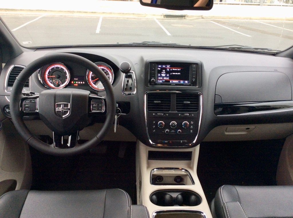 The steering wheel will be very familiar to any one who has driven a Chrysler product in the last decade. Cruise control and Bluetooth buttons fall right at hand and I always love Dodge’s toggle switches hidden behind the steering wheel spokes for radio volume and tuning. The three spoke steering wheel feels natural and looks beefy, considering the Caravan’s target audience. Also out-of-place is the dash mounted shifter that has a manumatic mode. The location logically opens up more space. But in manual mode, it’s an unnaturally long reach to shift gears and seems gimmicky on a minivan.