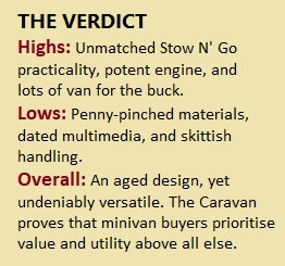 Our Caravan only had 1,300 miles at the time of testing. Despite some of the earlier workmanship grumbles, everything held together well. There were no loose pieces or rattles. Mechanically, the powertrain didn’t have any problems either. The Caravan, at least as an almost-new vehicle, came across as being solidly constructed.