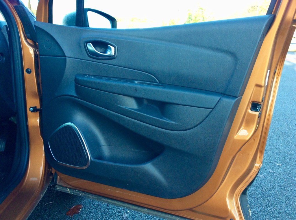 But to differentiate itself from that dainty parent, the Captur appears ready to tackle any terrain with chunky body cladding, a front Renault badge that’s the size of a dinner plate, and muscular 17” alloy wheels complete with black, brawny insets. Despite having the upright, dorky dimensions of many other generic small four-door crossovers, Renault went to great pains to differentiate this car. All Capturs boast contrasting roof and mirrors. Ours exhibited the attractive and eye-catching desert orange paint with diamond black roof and mirror combination that is proudly the default choice in all of Renault’s marketing. The blacked out roof creates the illusion of a giant sunroof (before you ask, our car didn’t have one). It also extends down all of the roof pillars, blending in with the tinted glass and pushing the latest “floating roof” styling trick. Large C-shaped LED front lamps and touches of chrome along the side cladding and Renault signature grille create an upscale flair. The curvature of the flared, pronounced wheelarches form the bulbous shape of the headlights and taillights. Tidy overhangs add a purposeful demeanor. There’s a lot of conflicting design language on such a small car, but it somehow comes together to create an attractive style that isn’t too busy or gaudy. From some angles, it’s downright cute!
