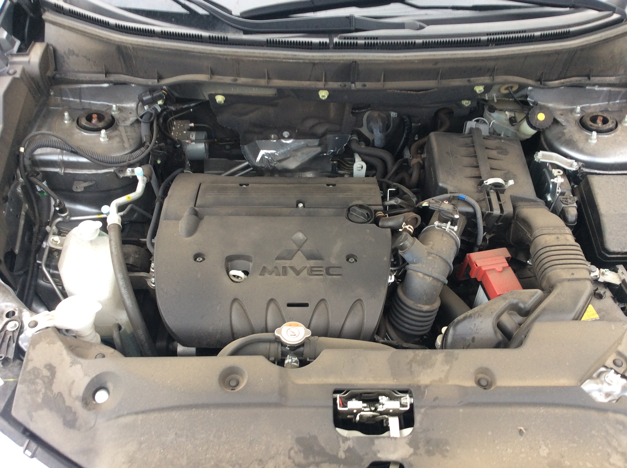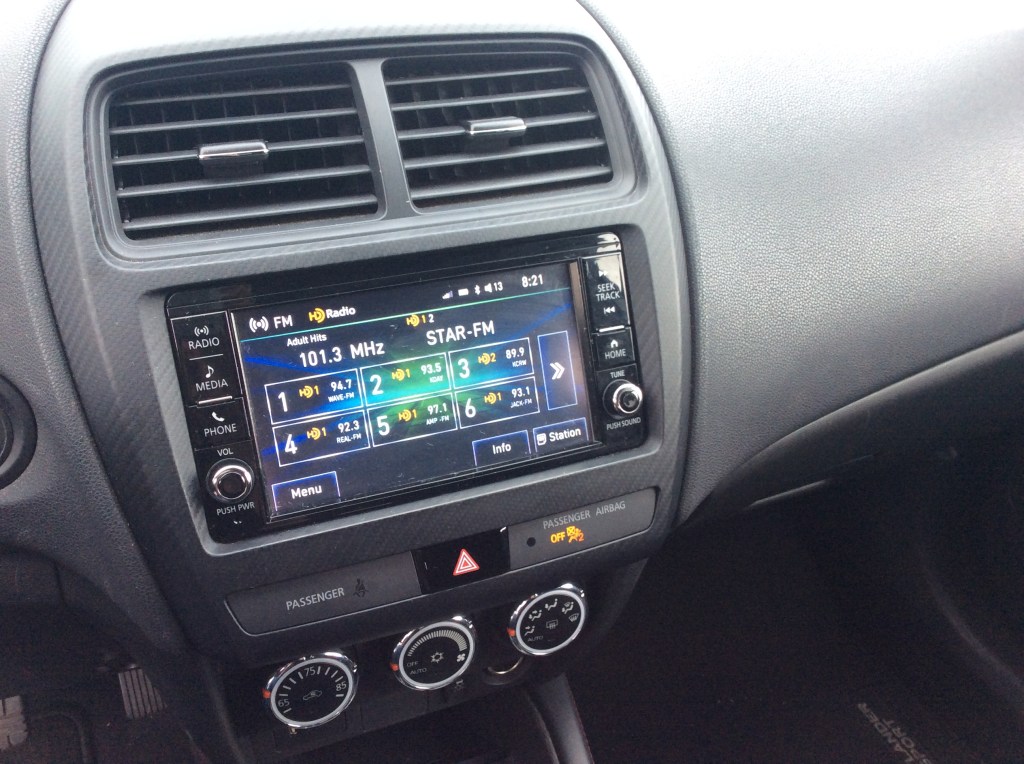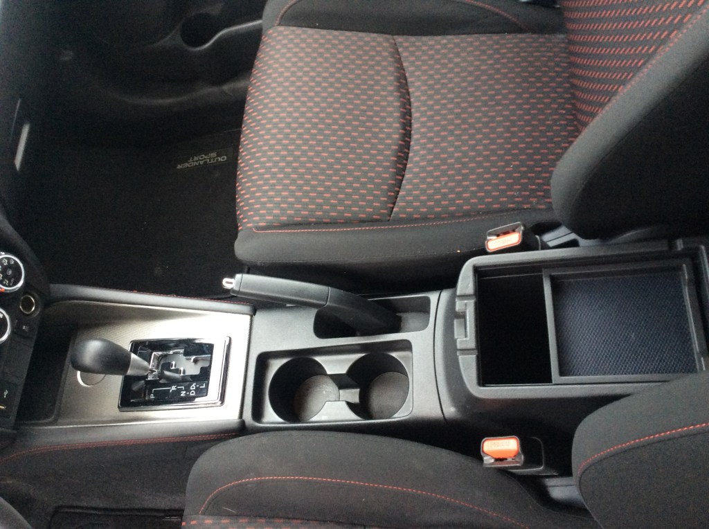 All of the other basics are here and checked-off. There’s a decently sized console that doubles as a non-adjustable armrest perfectly positioned between the front seats. The glove box and door storage bins are also generous. All of the controls worked as they should and are where they would be expected. Overall, the interior is the perfect example of Japanese uniformity. However, there were a few cheesy details that served as a reminder of Mitsubishi’s frugalness. The door window switches were not backlit at night. Despite our Sport not having foglights, the headlight stalk still had a switch to activate a set of imaginary beams. Apparently, it was too much trouble to design two different stalks. The headlights themselves were not automatic. The glove box is not damped and drops with a “twack!” on the passenger’s knees. The A/C button, driver info switch, and radio each emitted annoying beeps when pressed (although the radio’s could be turned off, the others couldn’t) that earned the car the name “Mitsubeepi”. These aren’t serious crimes, but are little midemeanours that add up and remind you that you didn’t buy a Lexus.