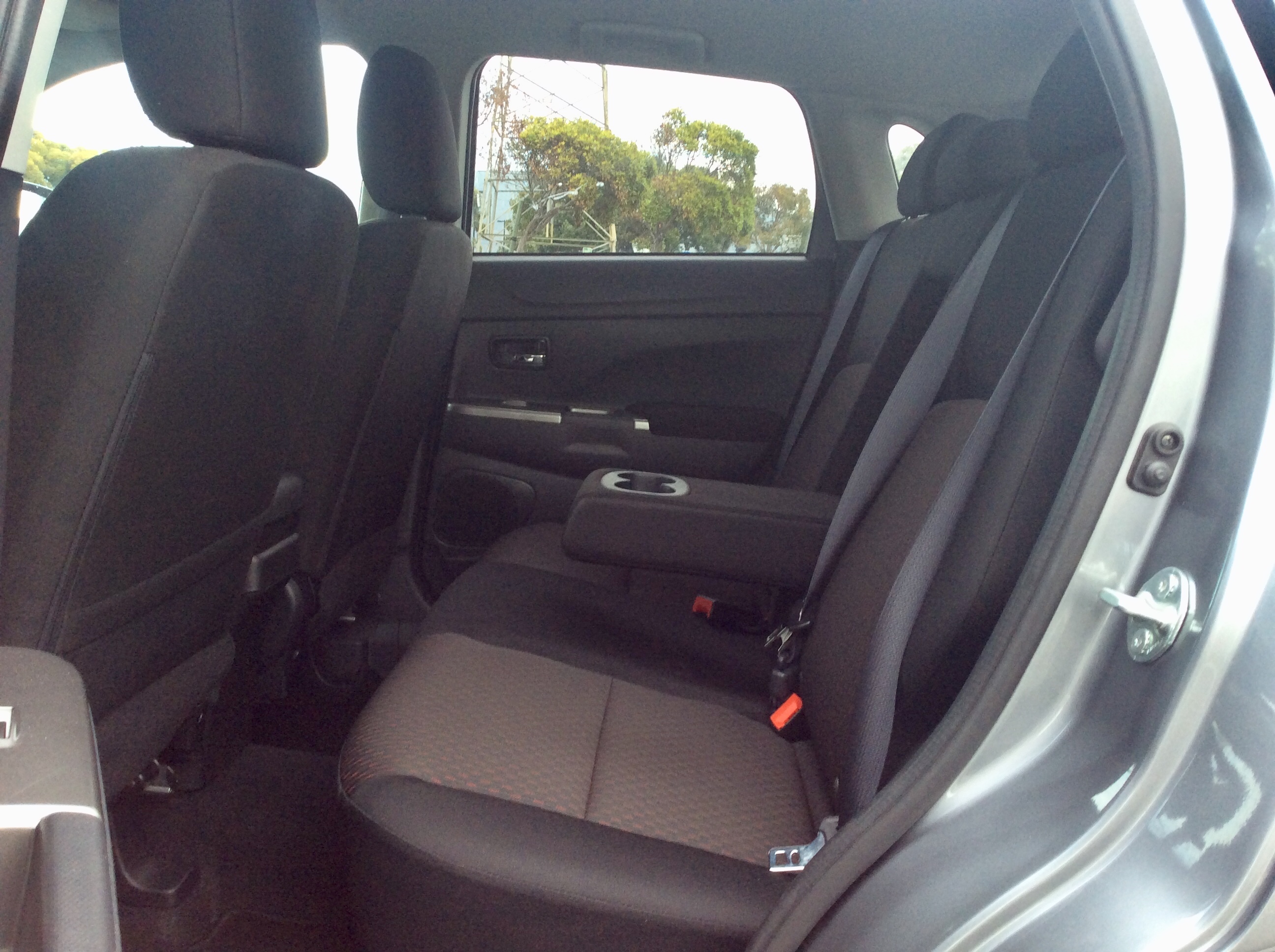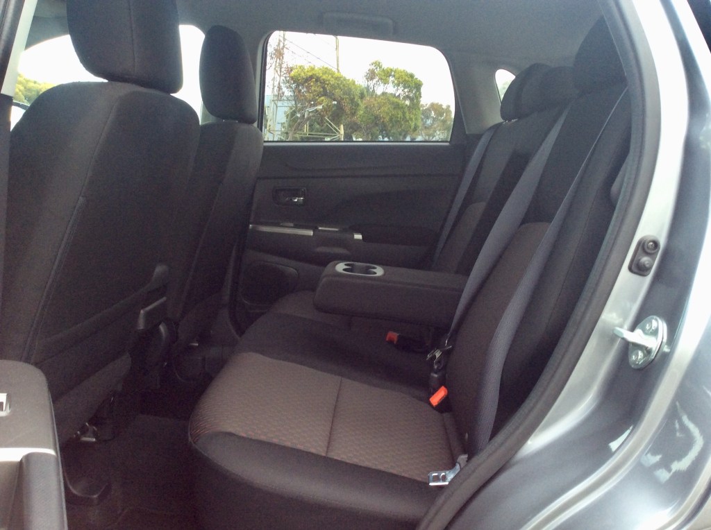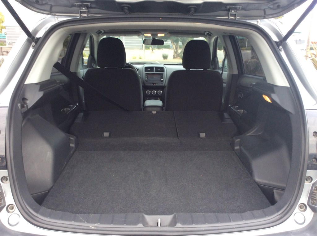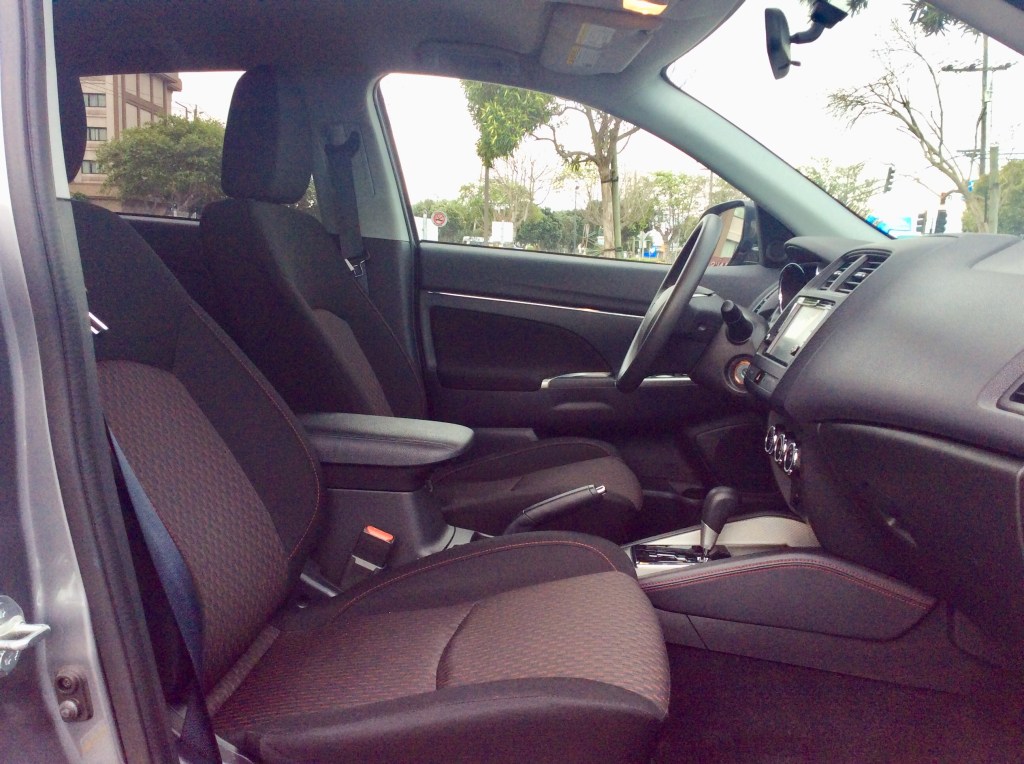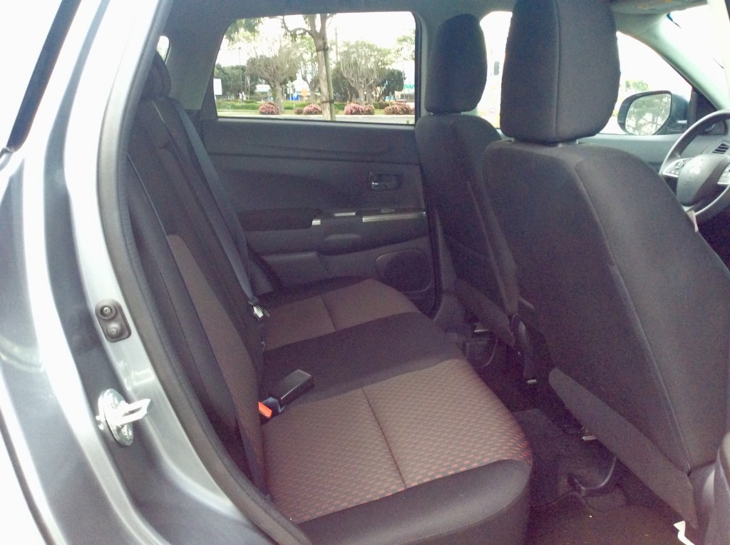 The back seat wasn’t a terrible place either. Firstly, the seatback is upright and there is no adjustment to recline; a common feature on many of the Sport’s competitors. With that out of the way, the bench seat is capable of comfortably carrying two adults and three in a pinch. Leg room is average for this class with 37.9 inches and knees do clear the front seatbacks. Headroom was surprisingly good. The sloping roof hinted that it’d rob precious space, but Mitsubishi was able to sculpt the headliner to clear even the tallest noggins. As expected, there’s no frills aside from an armrest with cupholders and one seatback pocket.