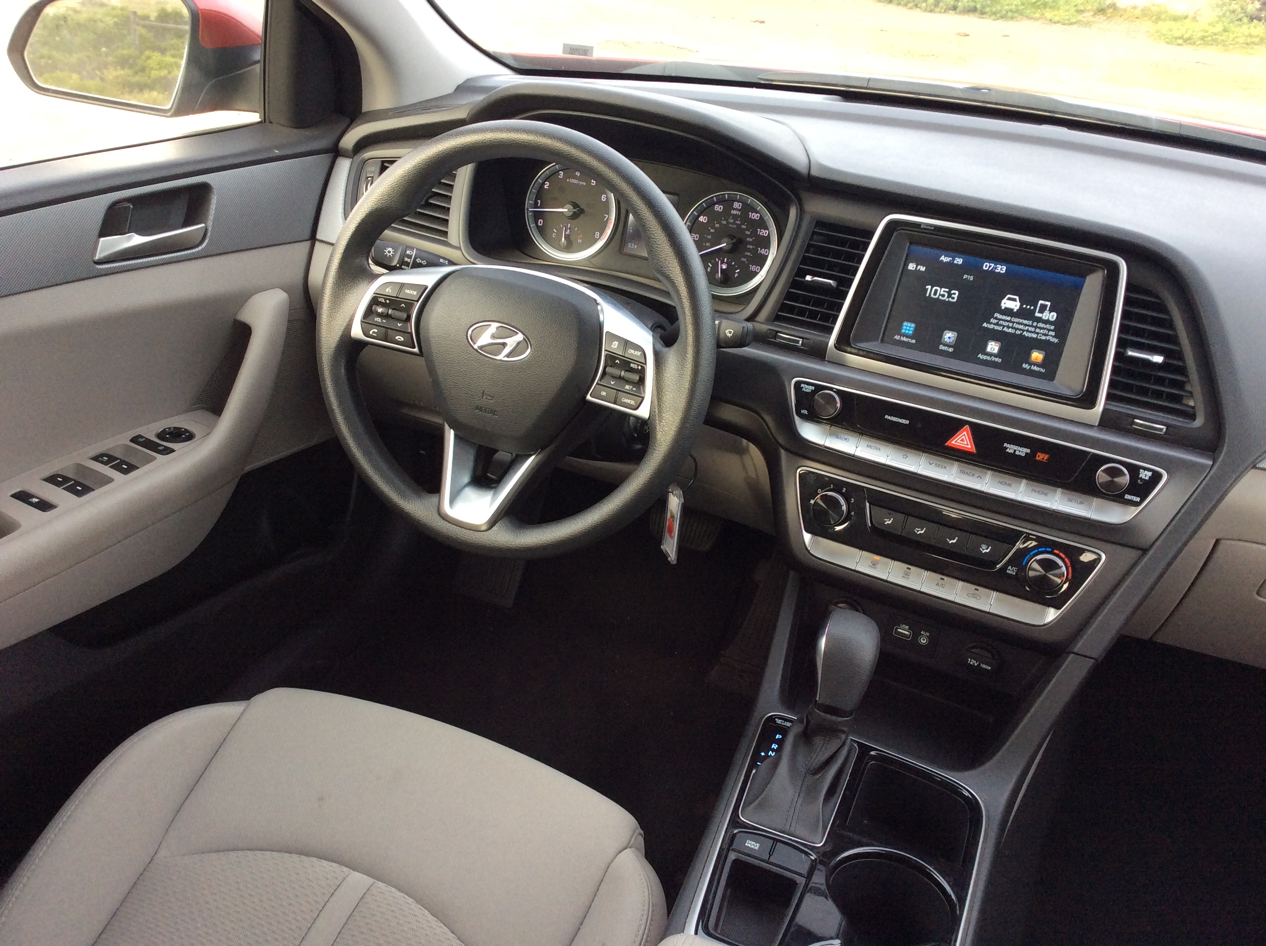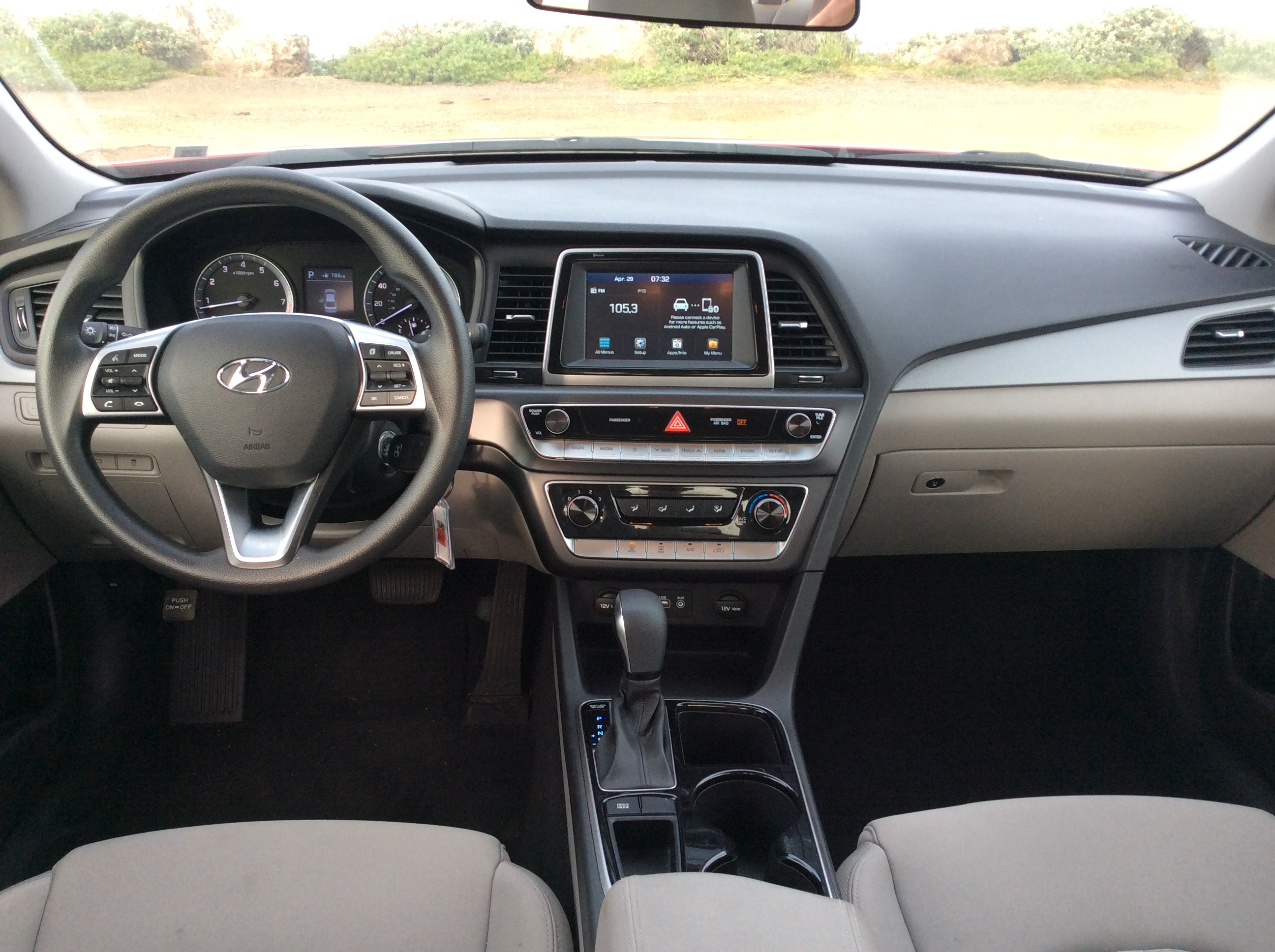 The first impression from within the Sonata is the interior space that matches the great expanses of Texas. Thanks to commodious dimensions and an abundant glass area, the cabin feels airy compared to most cars in this class. The front seats extend so far back that my 6’4” frame couldn’t reach the pedals. Rarely do I ever have to pull the seat forward, but in the Sonata, I did and it felt so wrong and so right at the same time. Even with the front seats pushed as far back as their rails allow, there’s still enough acreage for rear passenger’s knees to easily clear the seatbacks. Under the seats is enough space for toes to have headroom. The interior’s volume is more befitting for the upscale Genesis brand than the mainstream Sonata.
