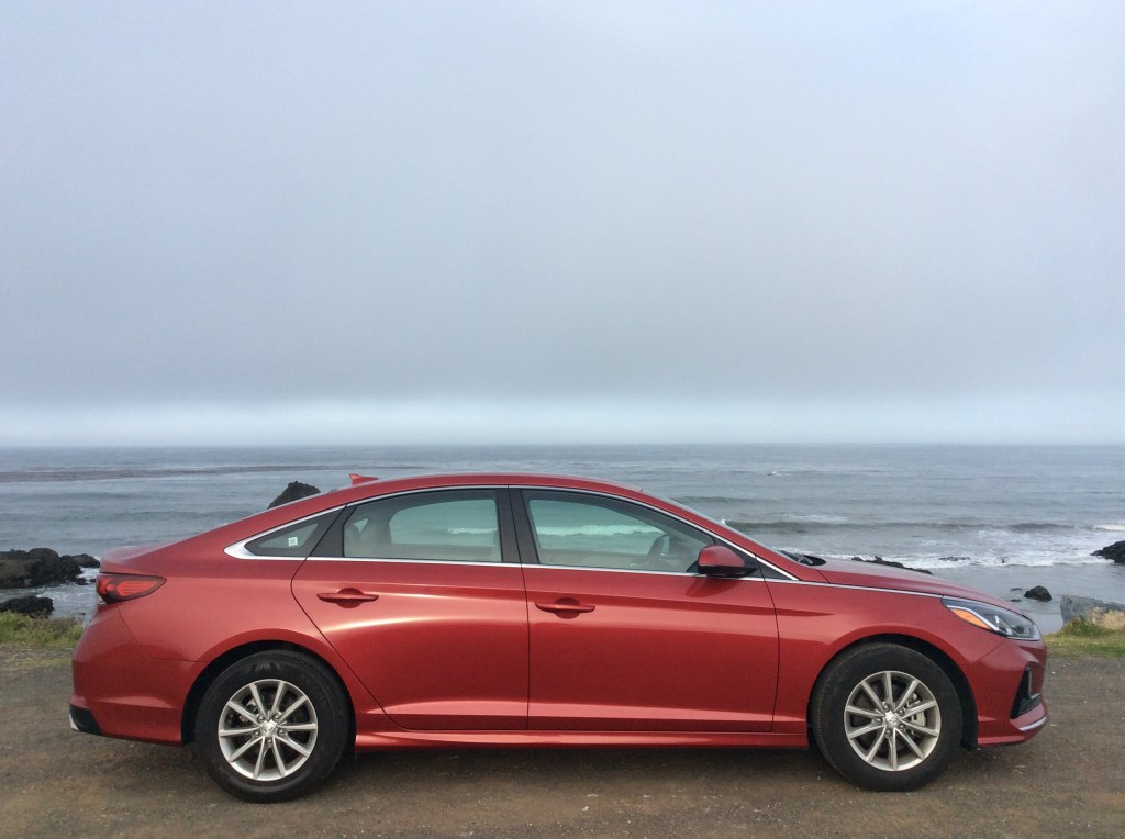 Driving the Sonata is as uncomplicated as the rest of the car. Three engines are offered within the lineup, two of them with a turbo, but ours came with the standard normally-aspirated 2.4 litre four-cylinder. It’s part of Hyundai’s “Theta” family of engines offered on a variety of models across the globe. It’s a modern, all-aluminum unit equipped with direct injection that churns out 185 horsepower. That’s about the norm for this class. The power delivery is smooth, linear, and once again, requires no learning curve. Several of our 0-60mph sprints returned an average time of 7.9 seconds, which is more than sufficient for a family car. Getting up to speed on the highway is effortless and hills don’t pose much of a challenge. Only when accelerating on a steep grade does the Sonata ever feel remotely out-of-breath. A car load of passengers doesn’t hamper the engine’s capabilities.