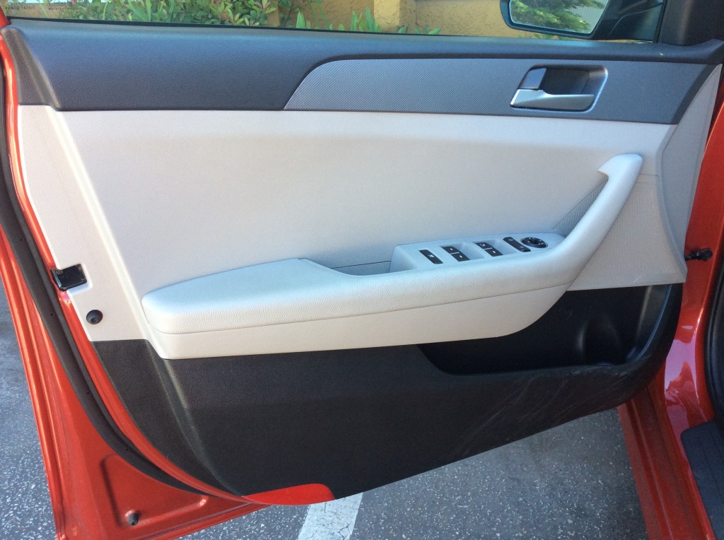 The beauty of the Sonata’s interior is that there’s no learning curve when getting into the car the first time. Anybody can jump in and will feel at home after a few miles behind the wheel. Interior quality is a mixed bag. The dash top and armrests are covered in a soft plastic and the centre stack has a classy, piano black finish. But the lower dash, console, and especially the door panels, are all big swathes of hard plastic. To Hyundai’s credit, they did try to liven up the mood with silver, pseudo carbon fiber inserts that extend into the doors and those hard surfaces do sport a two-tone theme. All of it felt well-assembled, solid, and it’s obvious the details were sweated.