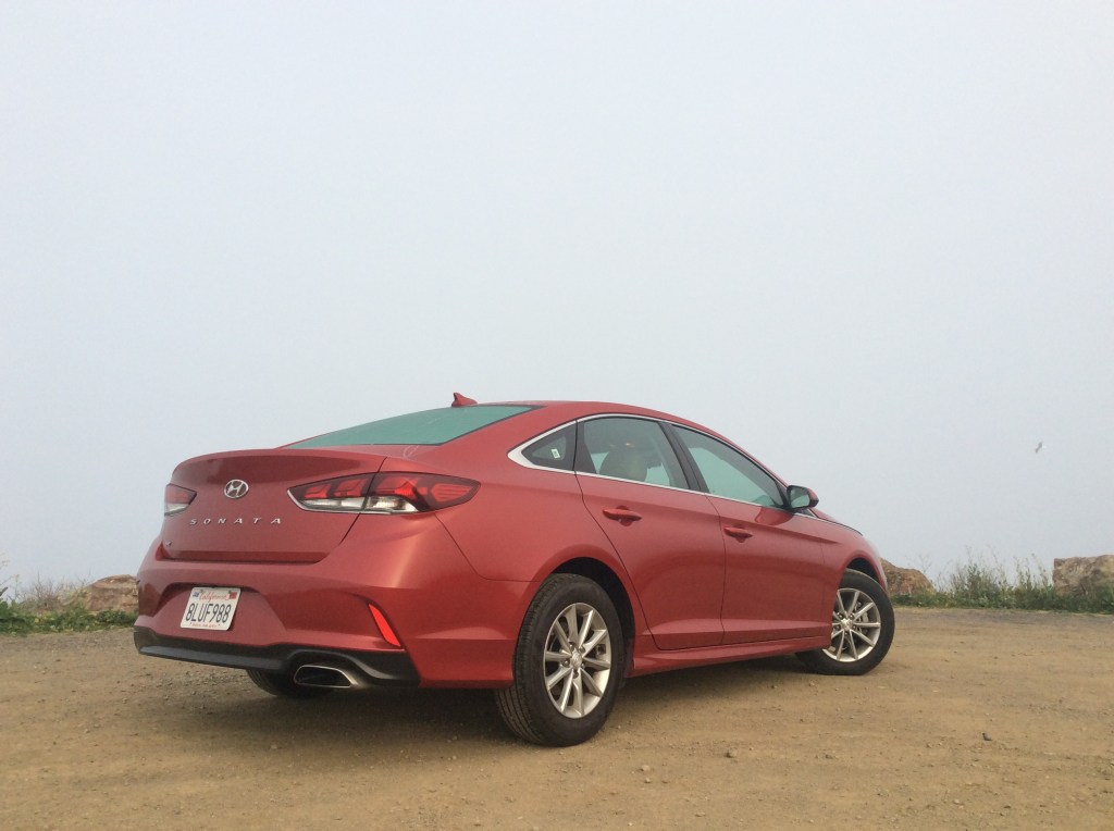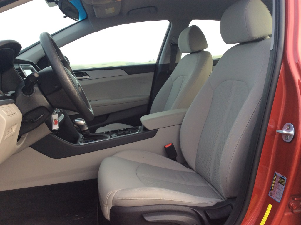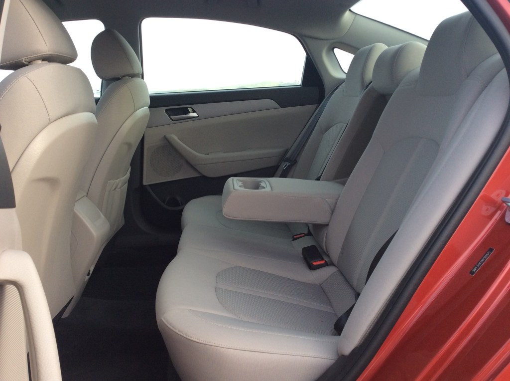 The front seats are cushy and offered enough shape and support to be comfortable after several hours on the road. There’s just enough bolstering and they’re a good place to rack up the miles. Finding a comfortable driving position is effortless thanks to a height adjustable seat, a tilt and telescoping steering wheel with generous flexibility, and excellent visibility all around due to thin roof pillars and sizeable side mirrors. The rear window does rake steeply in the back, hiding the trunklid from view, though the crisp view from the backup camera compensates for that. With the redo, a cross-traffic alert and blind-spot monitoring system are standard on all Sonatas.